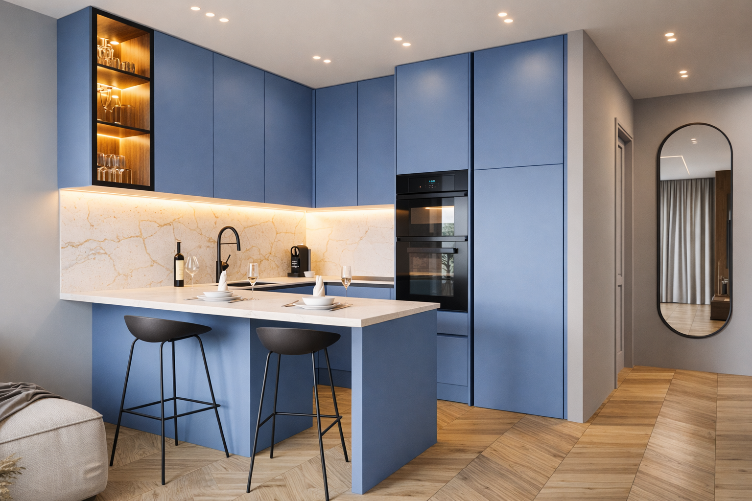 make it ultra realistic image and put some modern accessories on the kitchen island