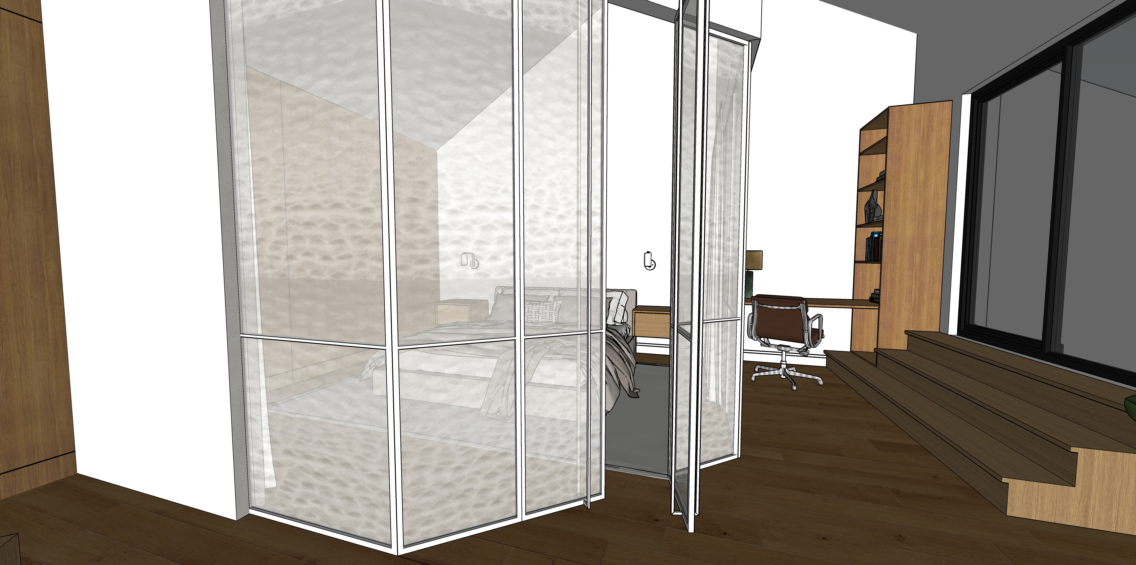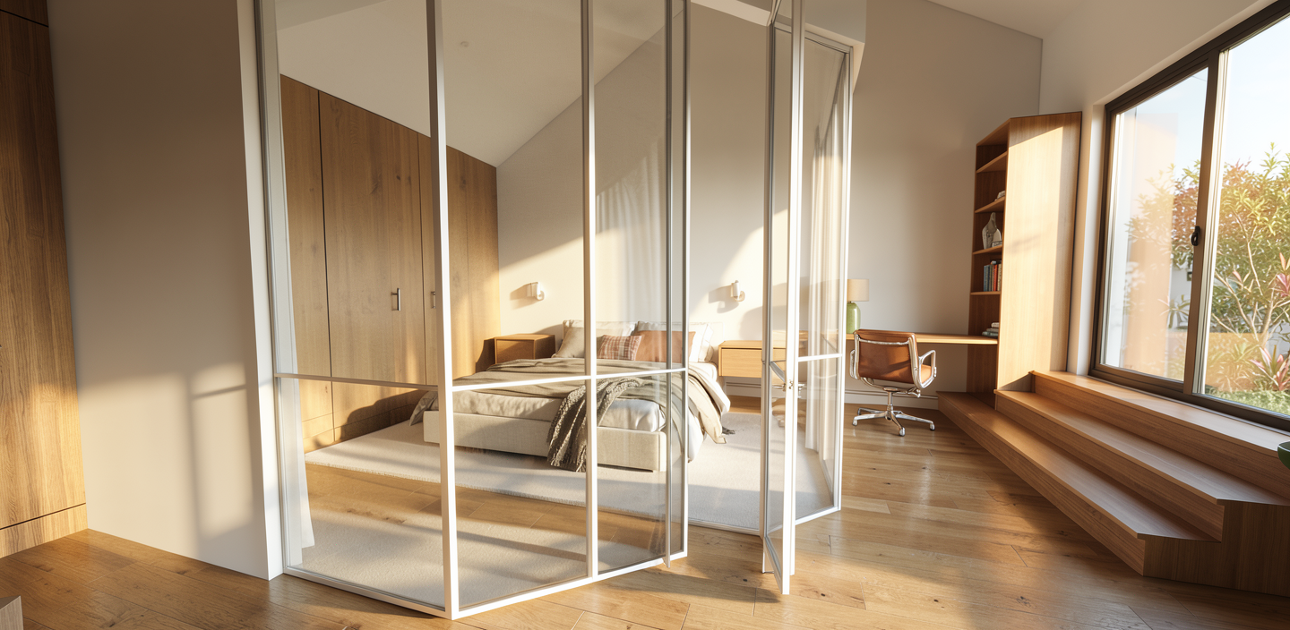 par la porte patio a droite on voit le balcon de la maison