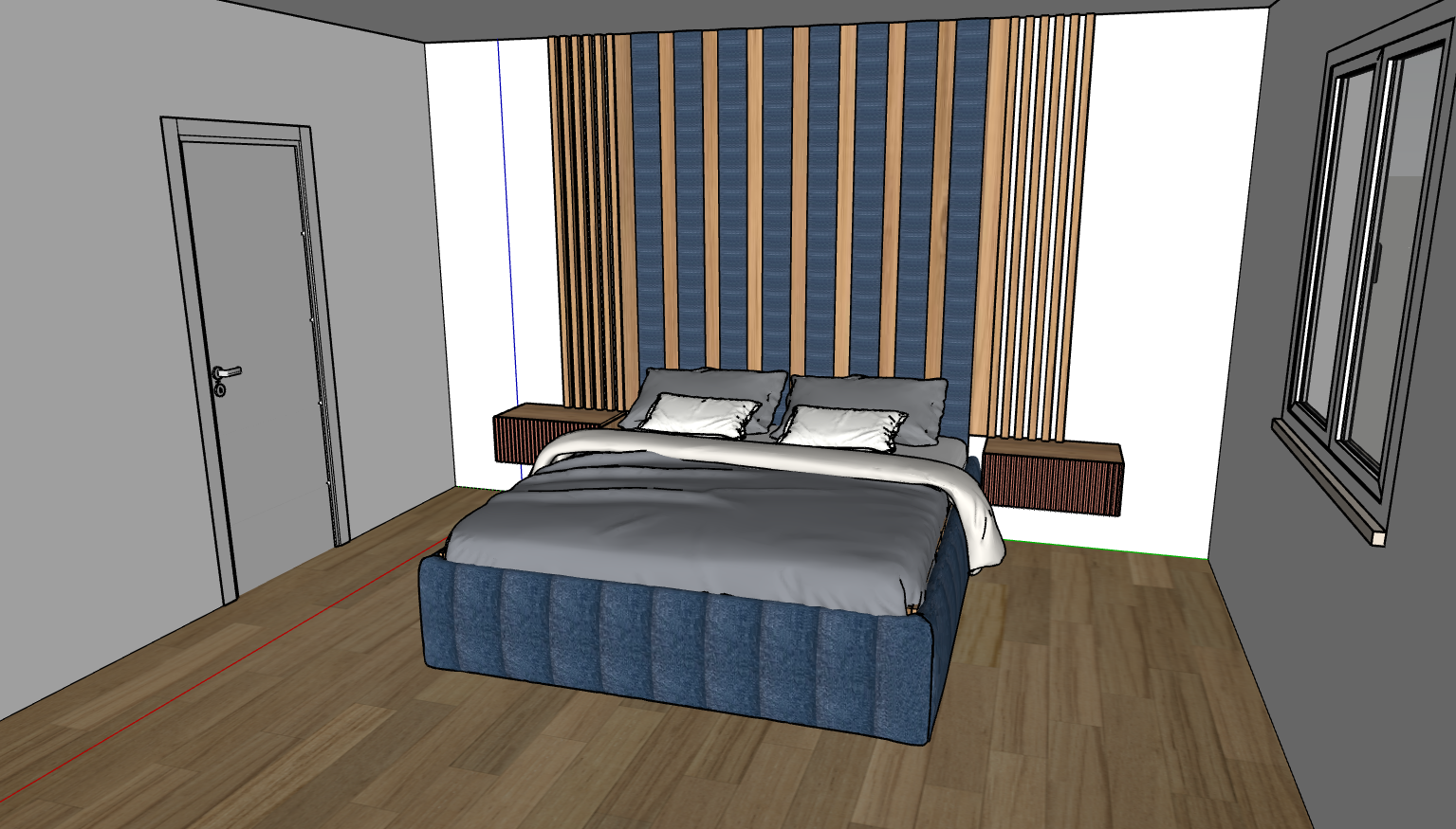 the fronts of the bedside tables are soft coral pink