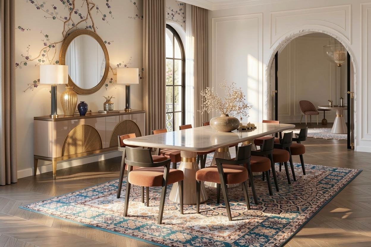 add beige satin blanket on the bed add beautifull beige coctail dress on the puf
