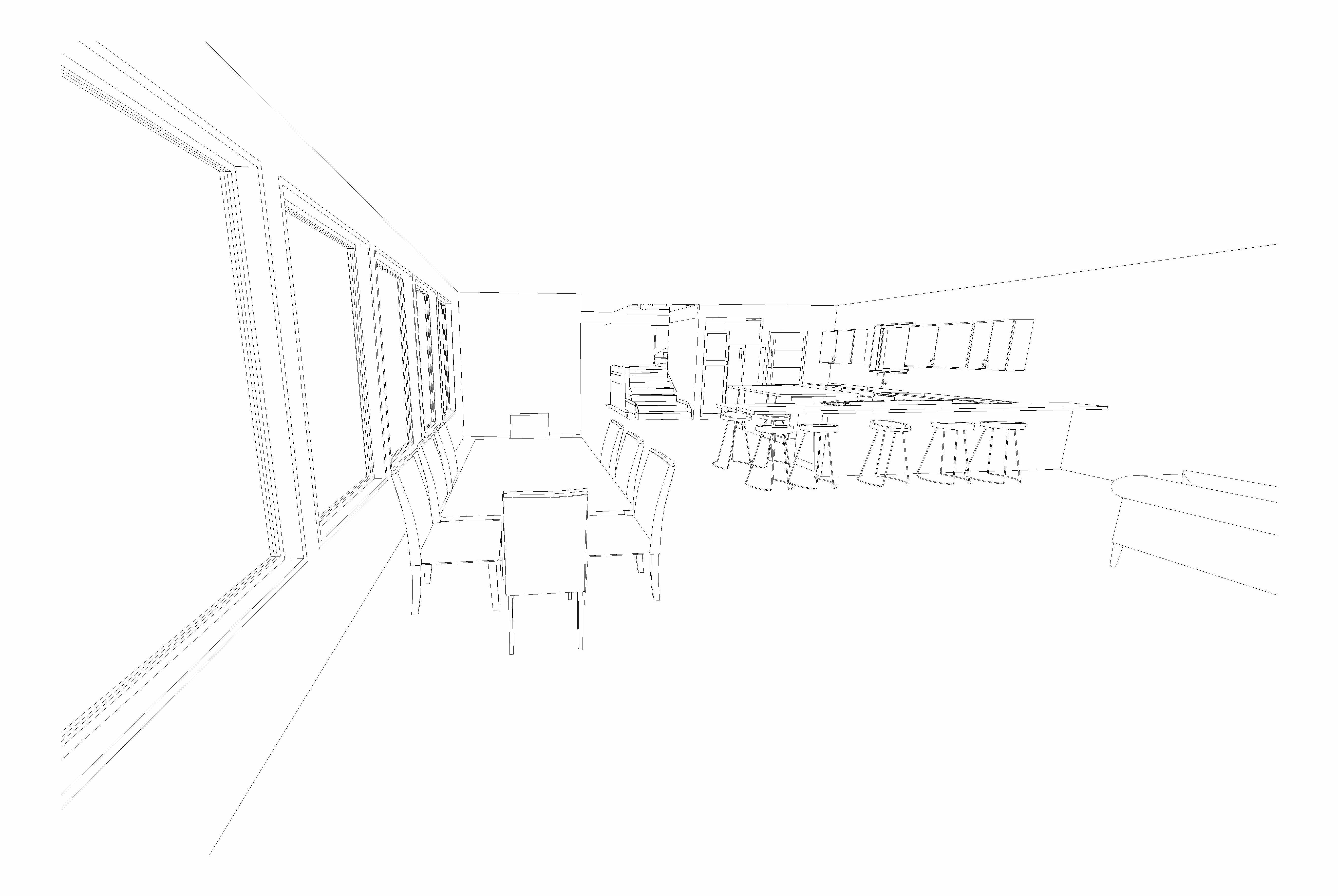 a photorealistic ultra luxury interior rendering of a modern open plan kitchen and living space the kitchen features a tuxedo cabinet design matte charcoal black base cabinets and a full height fridge wall contrasted with light natural oak upper cabinets with glass pane inserts and warm integrated led lighting a large light oak island with a black marble countertop sits center stage countertops and backsplashes are white calacatta marble with subtle grey veining in the foreground a large solid walnut dining table is set for a dinner party with leather chairs in the living area a plush designer sofa and marble coffee table create a sophisticated lounge the space is filled with elegant people socializing a couple preparing food at the island and guests seated at the dining table large floor to ceiling windows provide soft natural daylight supplemented by warm recessed ceiling lights high end architectural photography 8k resolution cinematic lighting sophisticated and inviting atmosphere