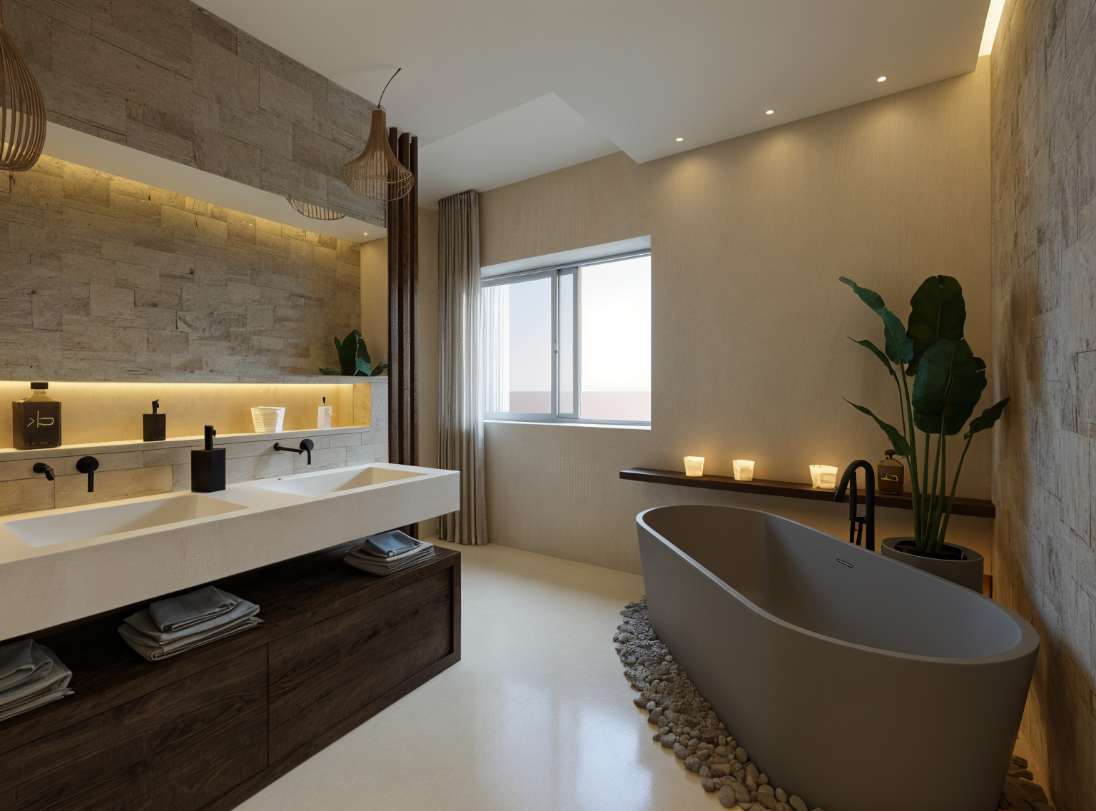 generate a night view with ground spotlights on the edge of pavement illuminating the vegetation two small spotlights on the ground level marking the staircase entrance