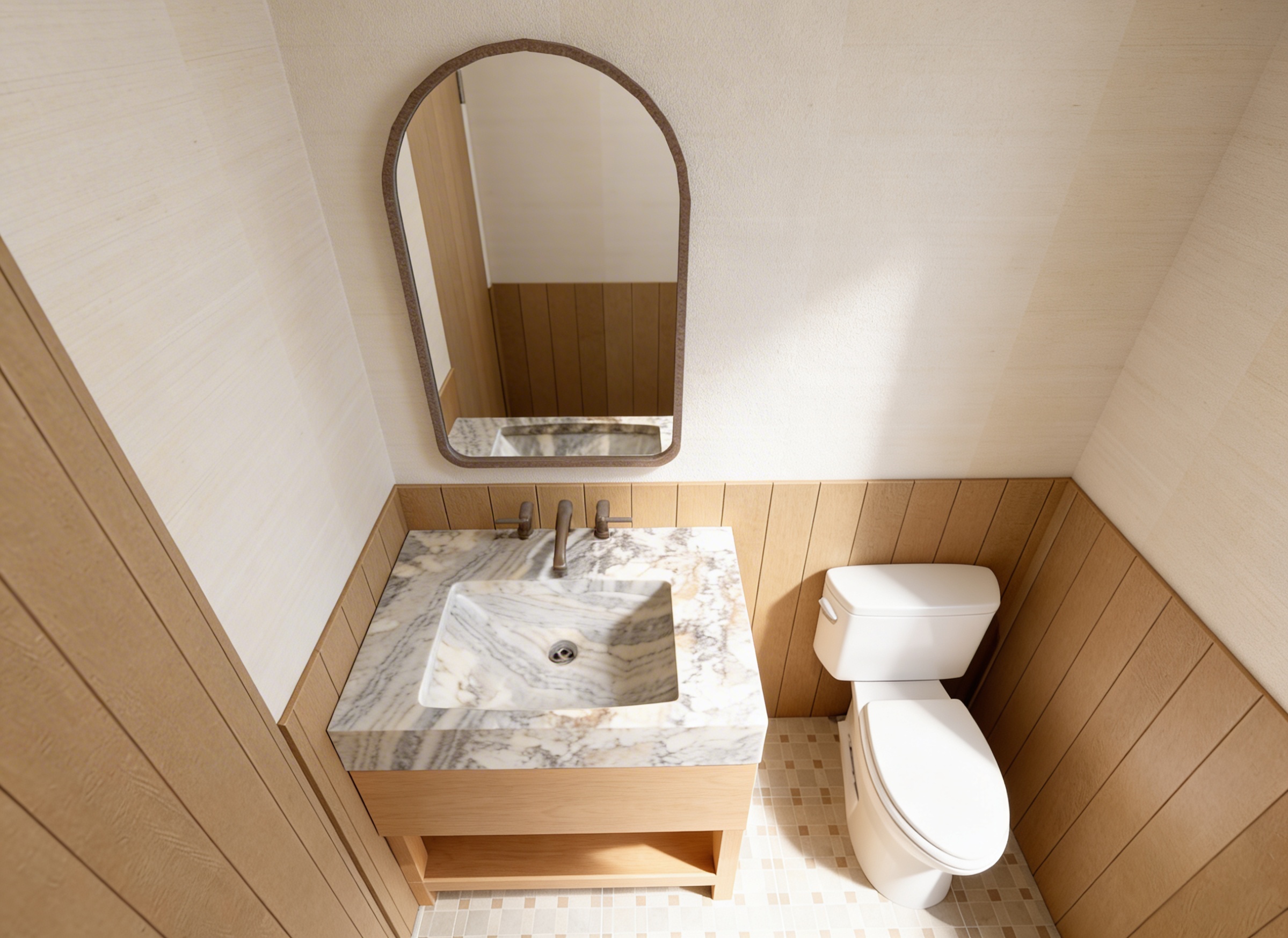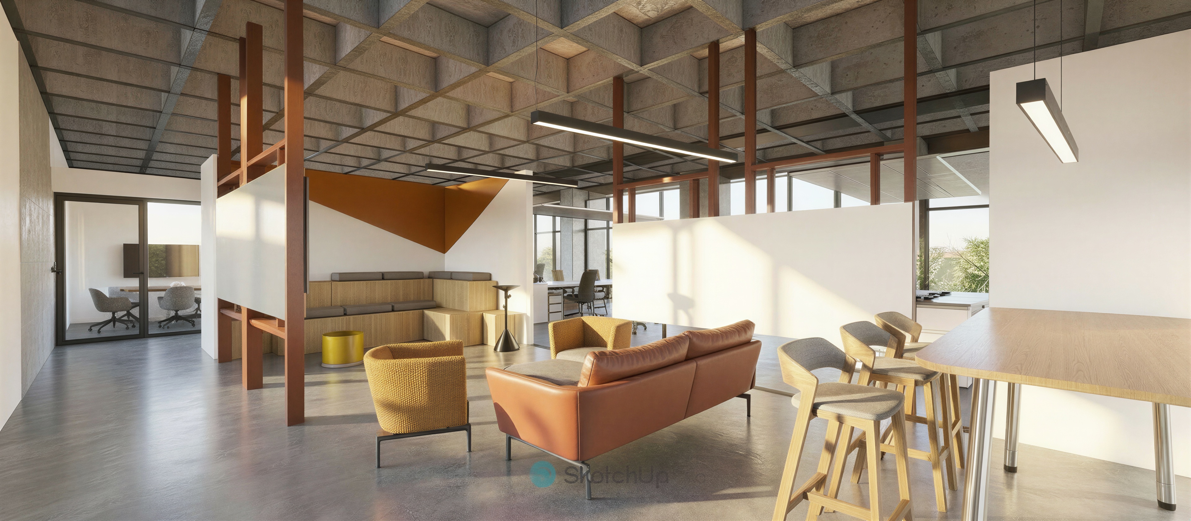 add light wooden floor and industrial touch and a dark gray wall warm light blck light fixture