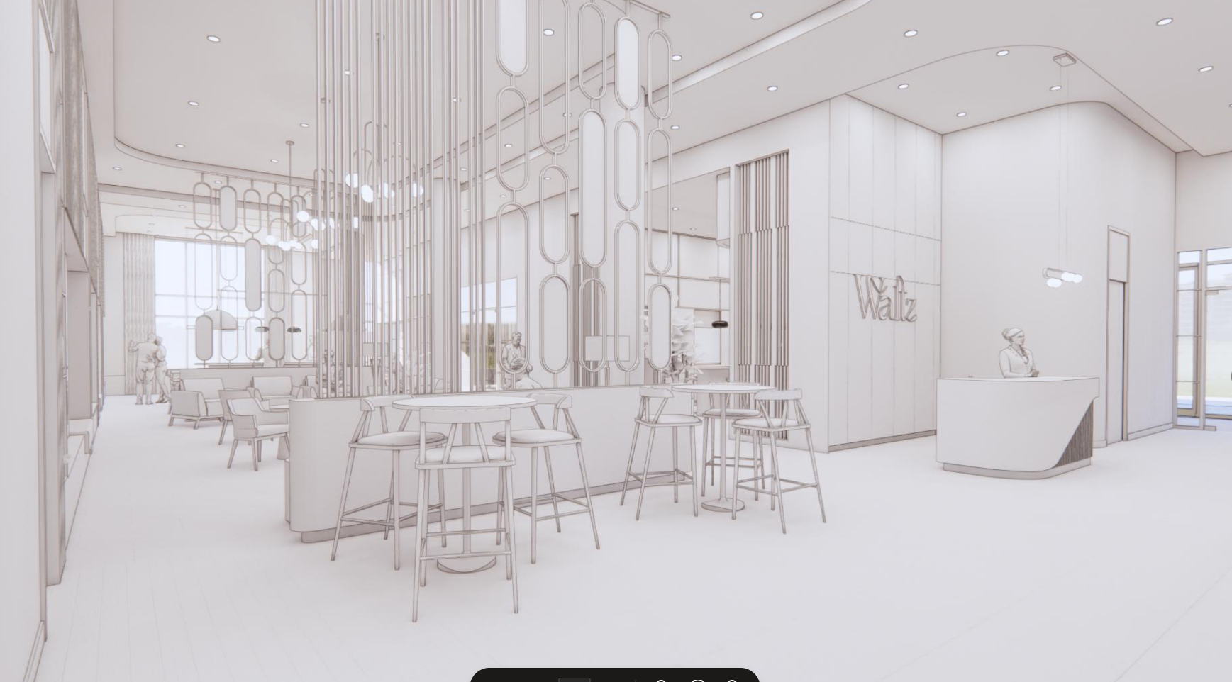 turn this 3d rendering into a realistic rendering it is a lobby to an condo building the color palette is wood dark oliv breen and beige and white