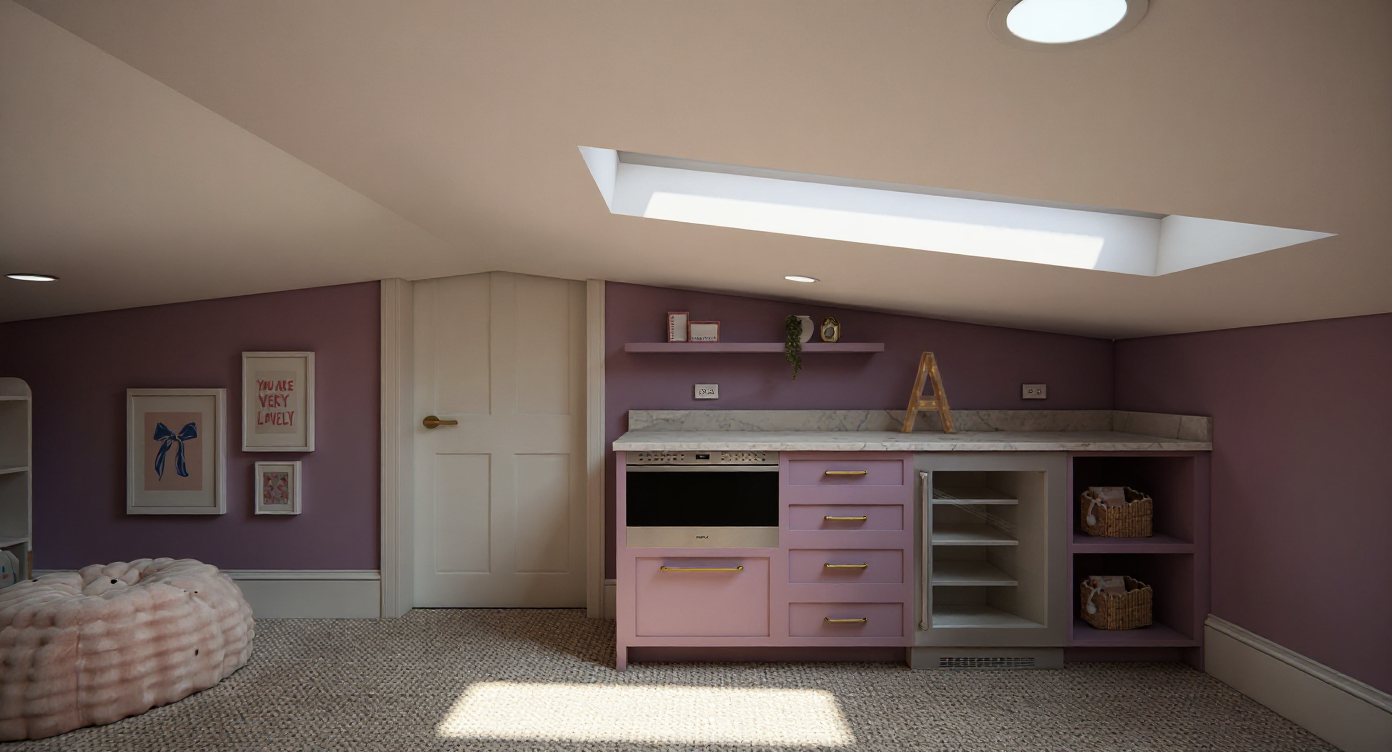a manicured lawn layered flower beds low maintenance shrubs native plants concrete sidewalk from right side garage to front door driveway enters on right side show mature in the background with the appalachian mountains show clouds in the sky