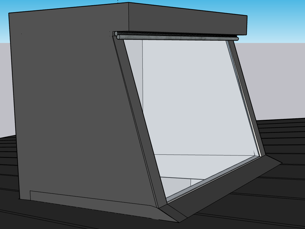 this is a skylight on a standing seam metal roof the light box is glass and standing seam metal