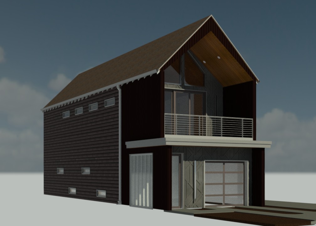 modernist exterior shot remove door next to garage door match siding vertical treatment to corrugated material switch to daytime with lights on architecture