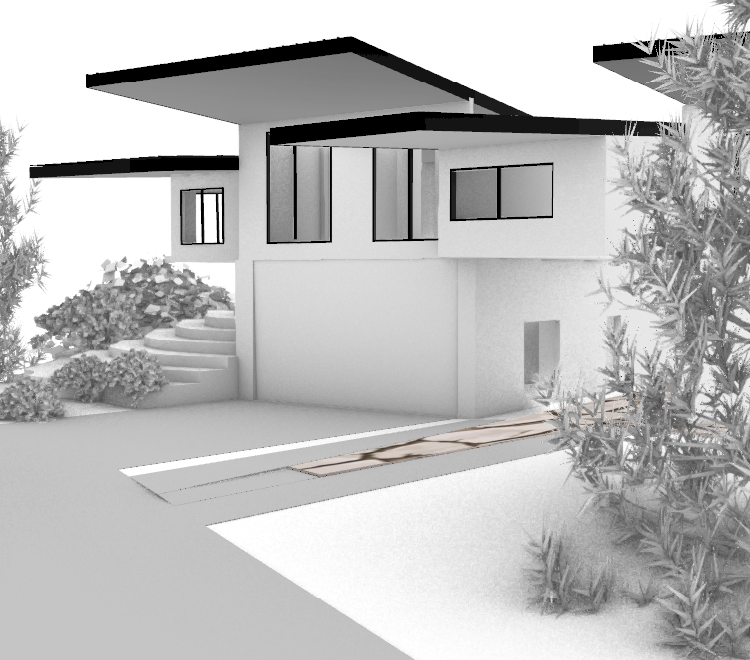 render this two story building in this image with soft textures the roof is a black standing seam roof the exterior walls are light oak wood panels like a cabin the add trees to the sides of the building soft lighting watercolor realistic border fades out to white