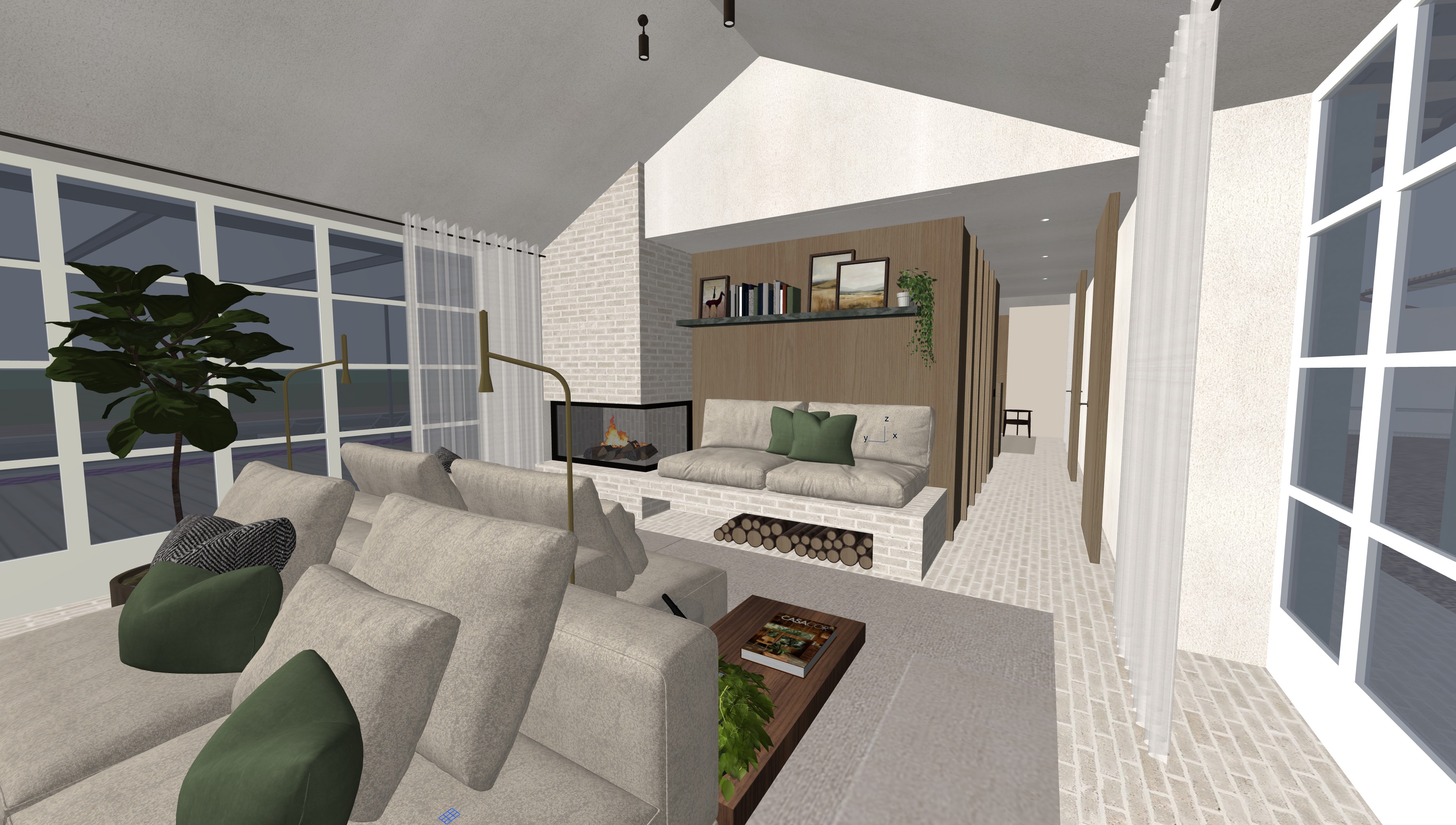 mantieni materiali e colori dello sketch a pavimento c un laterizio montato a correre grigio caldo le librerie e i mobili sono in rovere