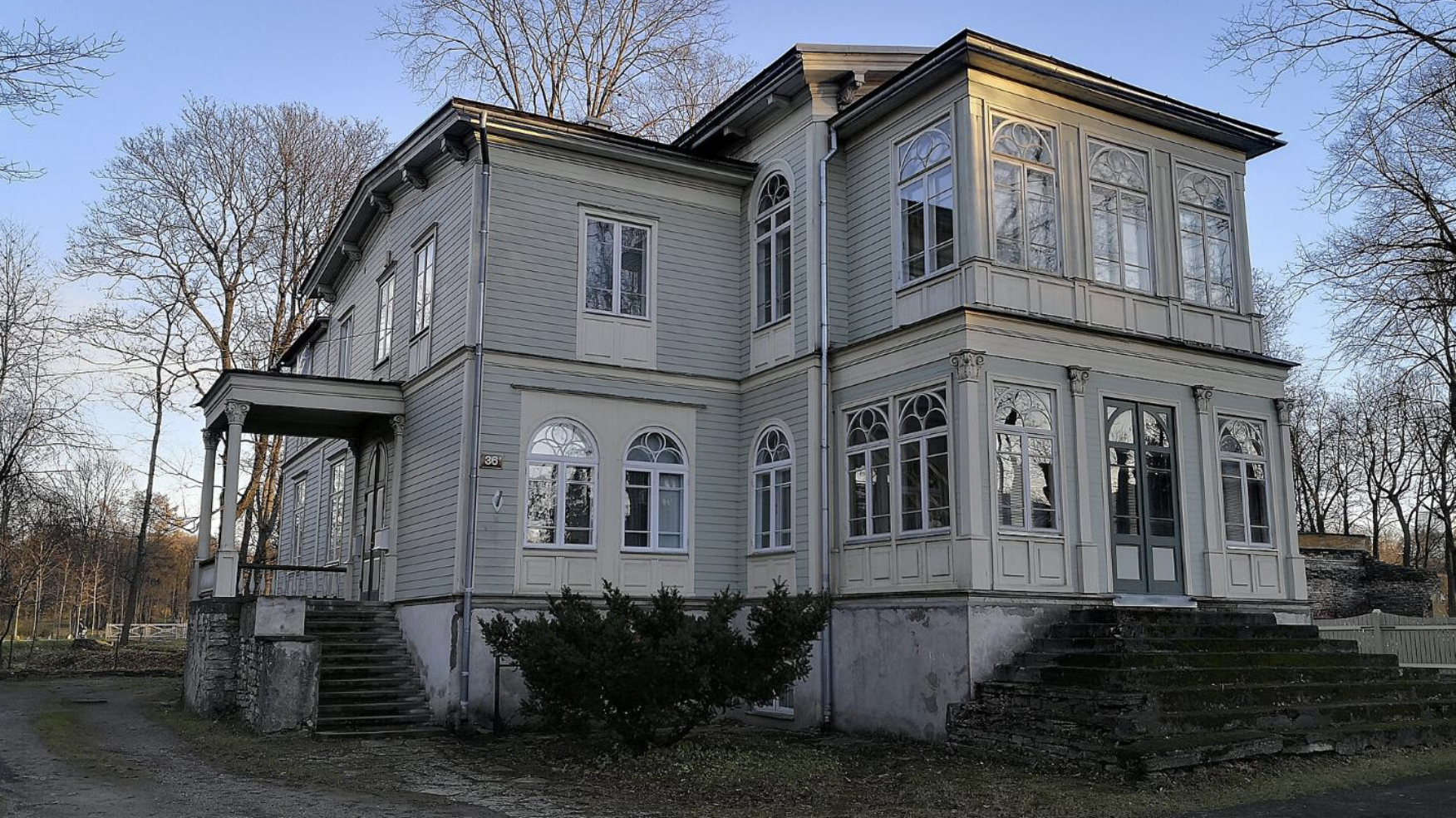 930s feel in moscow remove the building in background wilder evergreens in front of the house remove modern lights and round shrubs cloudy evening setting
