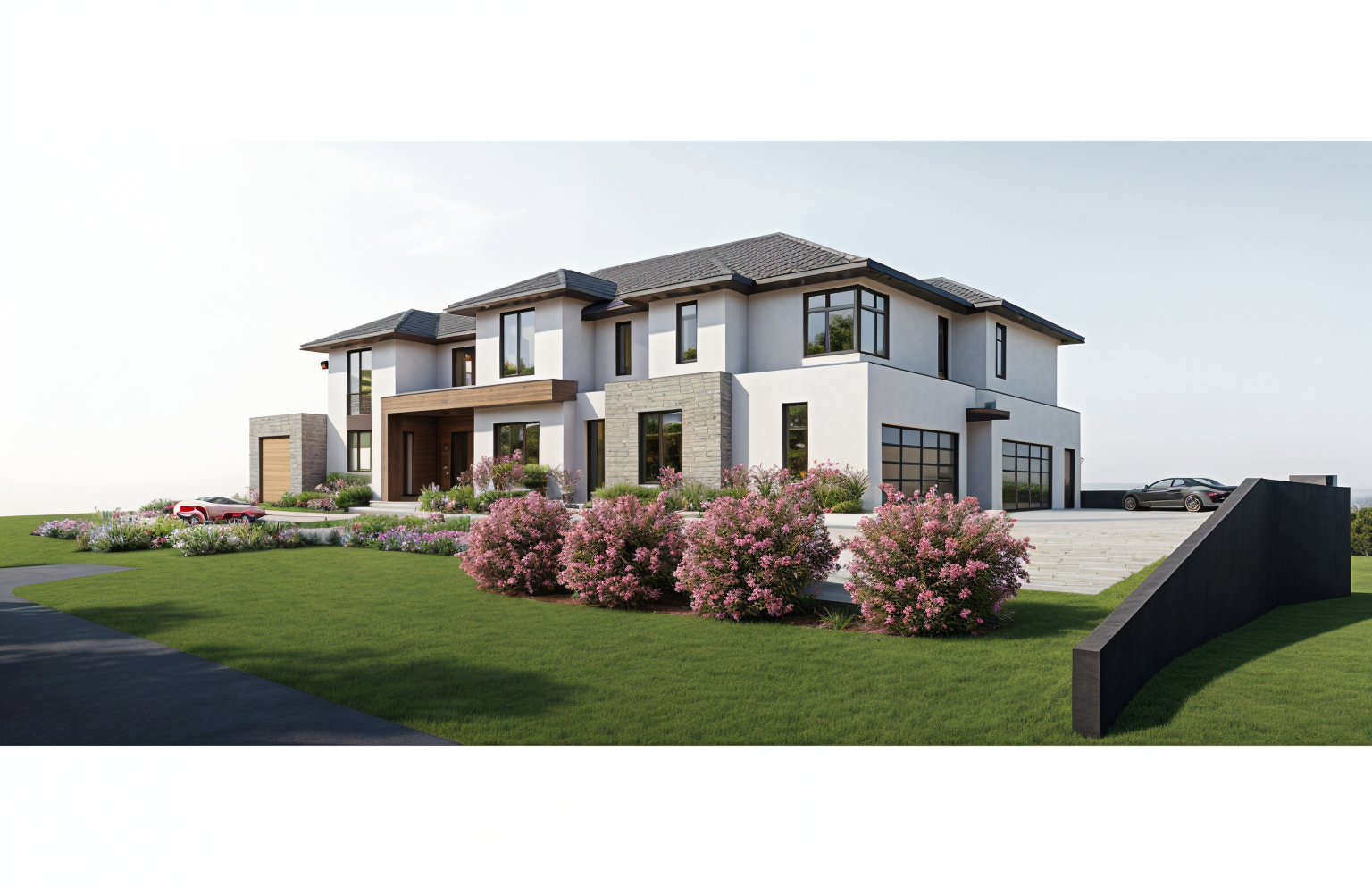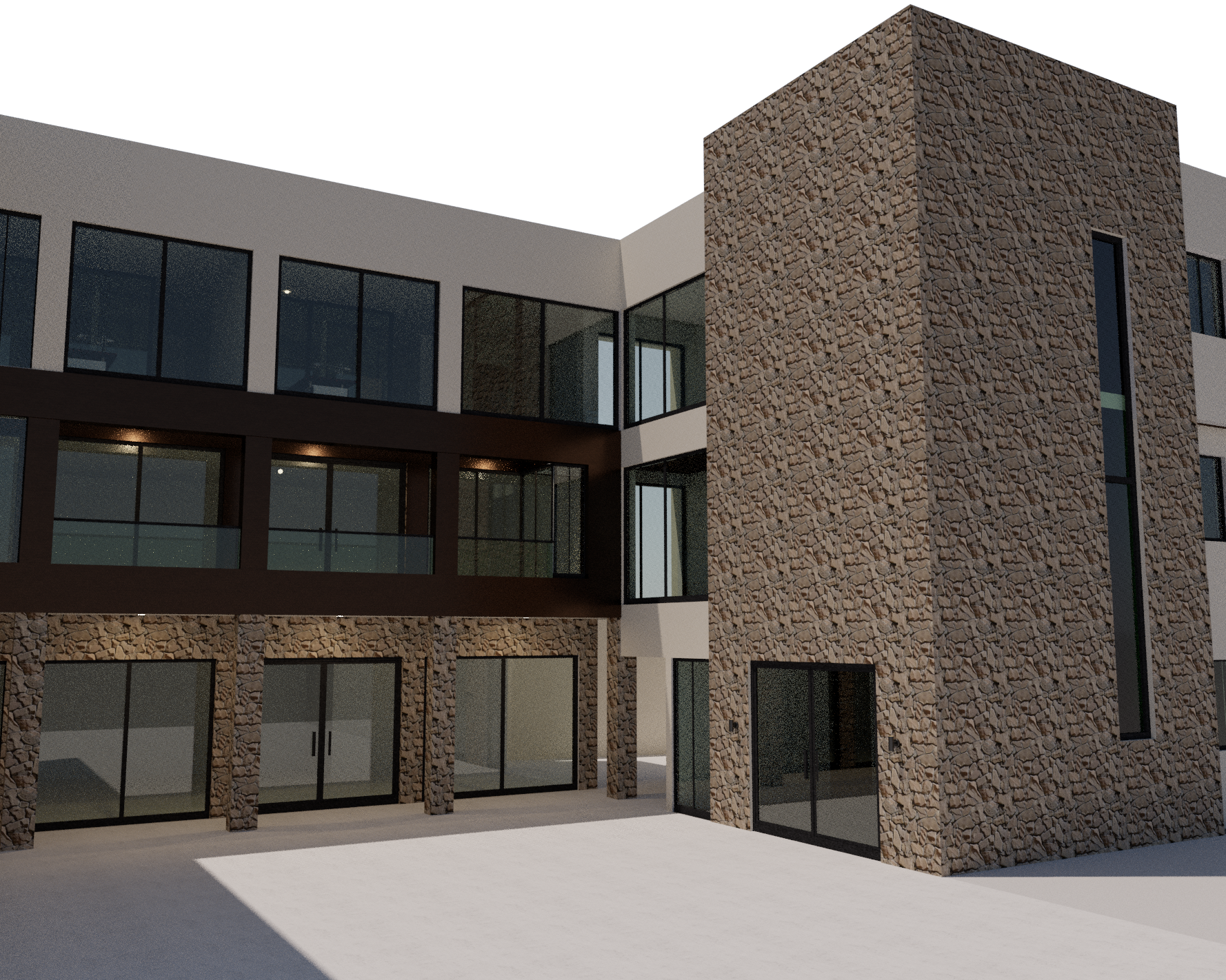 office building with high realism materials natural reflection concrete floors vegetation