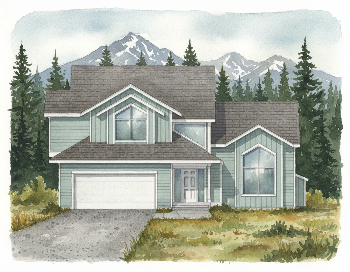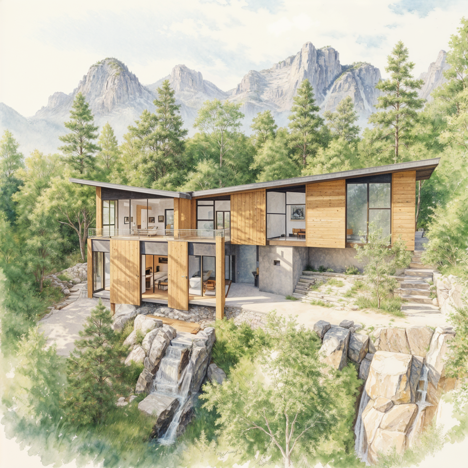 give it a bit more realistic detail but still in the watercolor style mountain environment