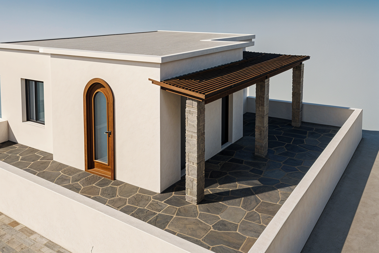 wide angle shot create a golden hour visualization scene for this photo architecture