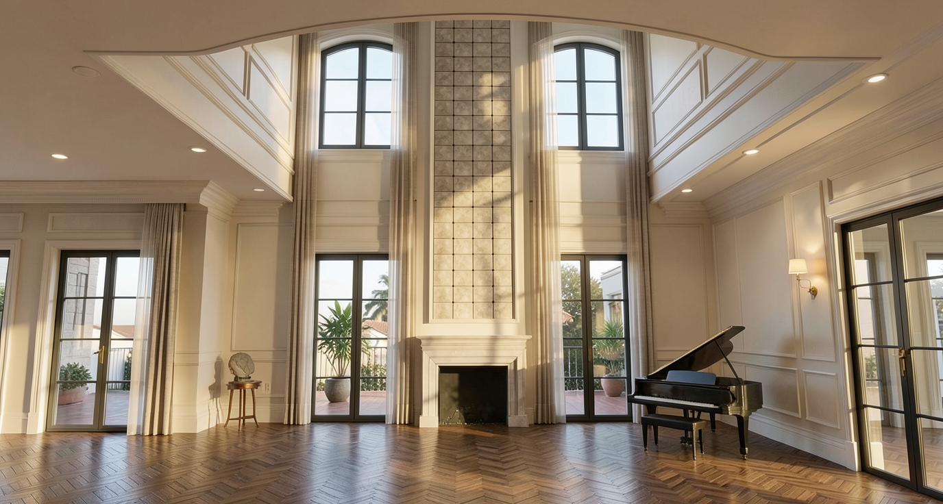modernist generate a sectional perspective render following exactly as the sectional perspective drawing make it minimal with the section lines being white and add some color and texture on the interior spaces make it a scene of and art gallery with people moving across the different levels the people should just their silhouettes in black architecture