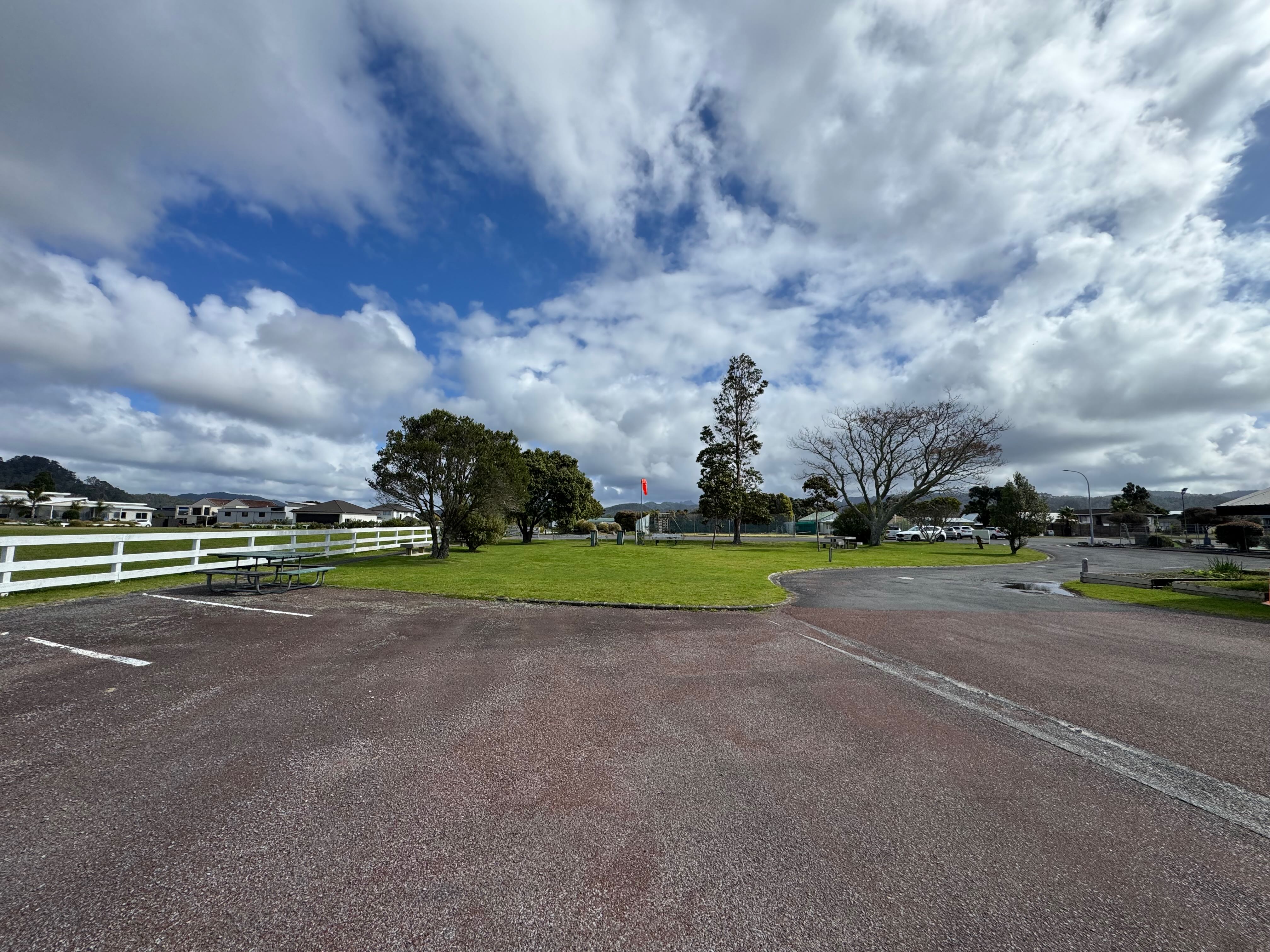 modernist exterior shot add 5 or 6 motorhomes to the grass area architecture