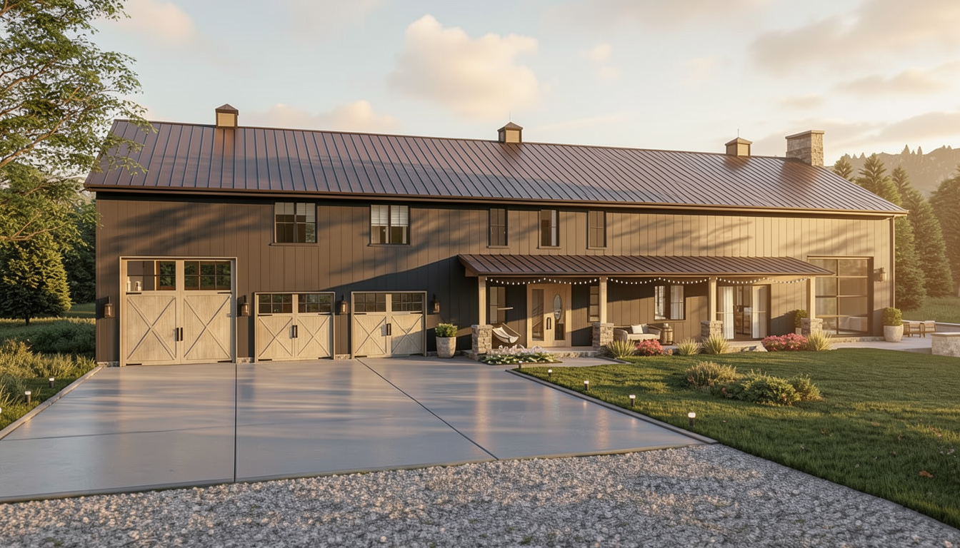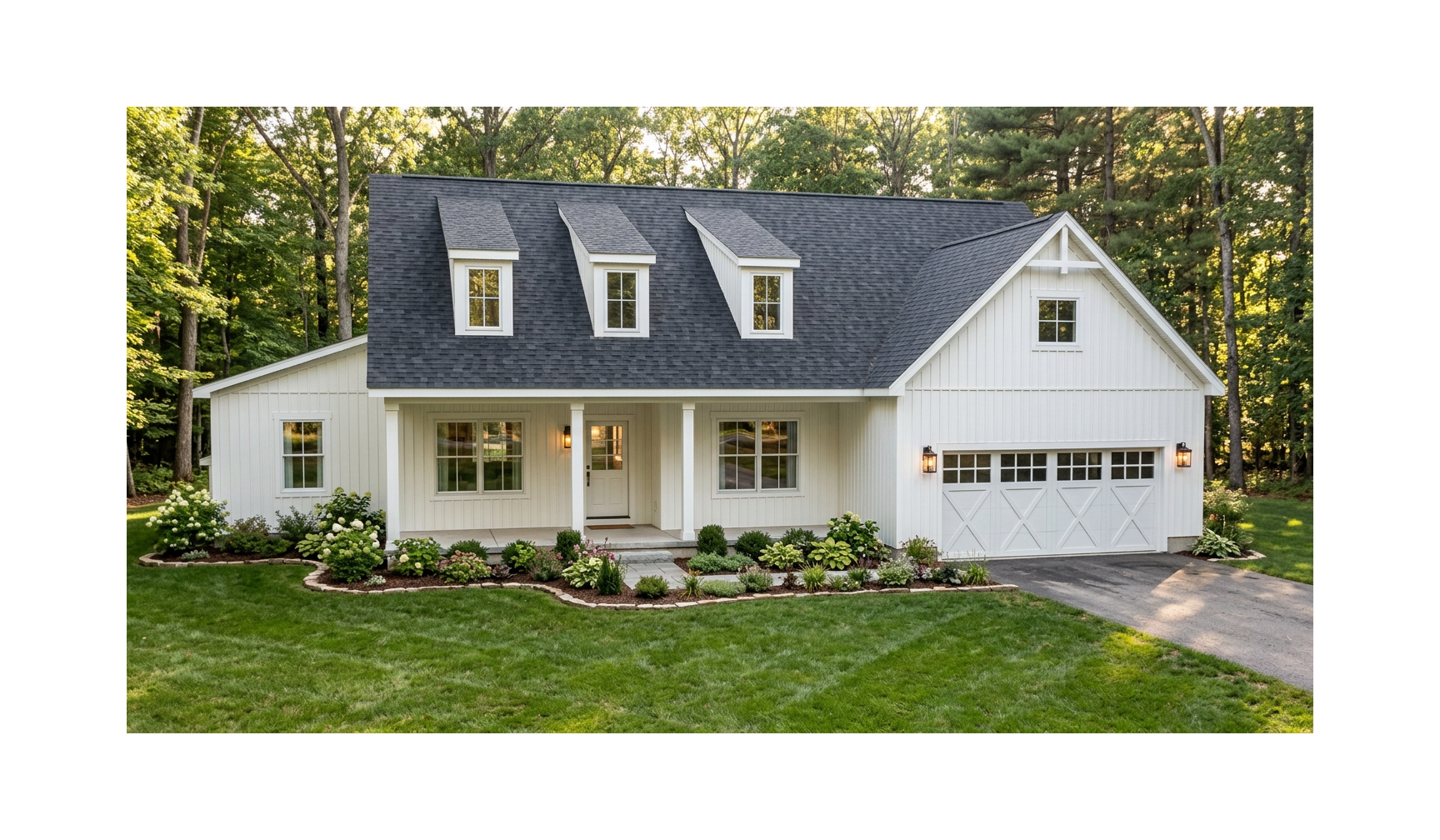 fill in the white space on the top and bottom with blended landscaping and grass keep the driveway from the garage door intact