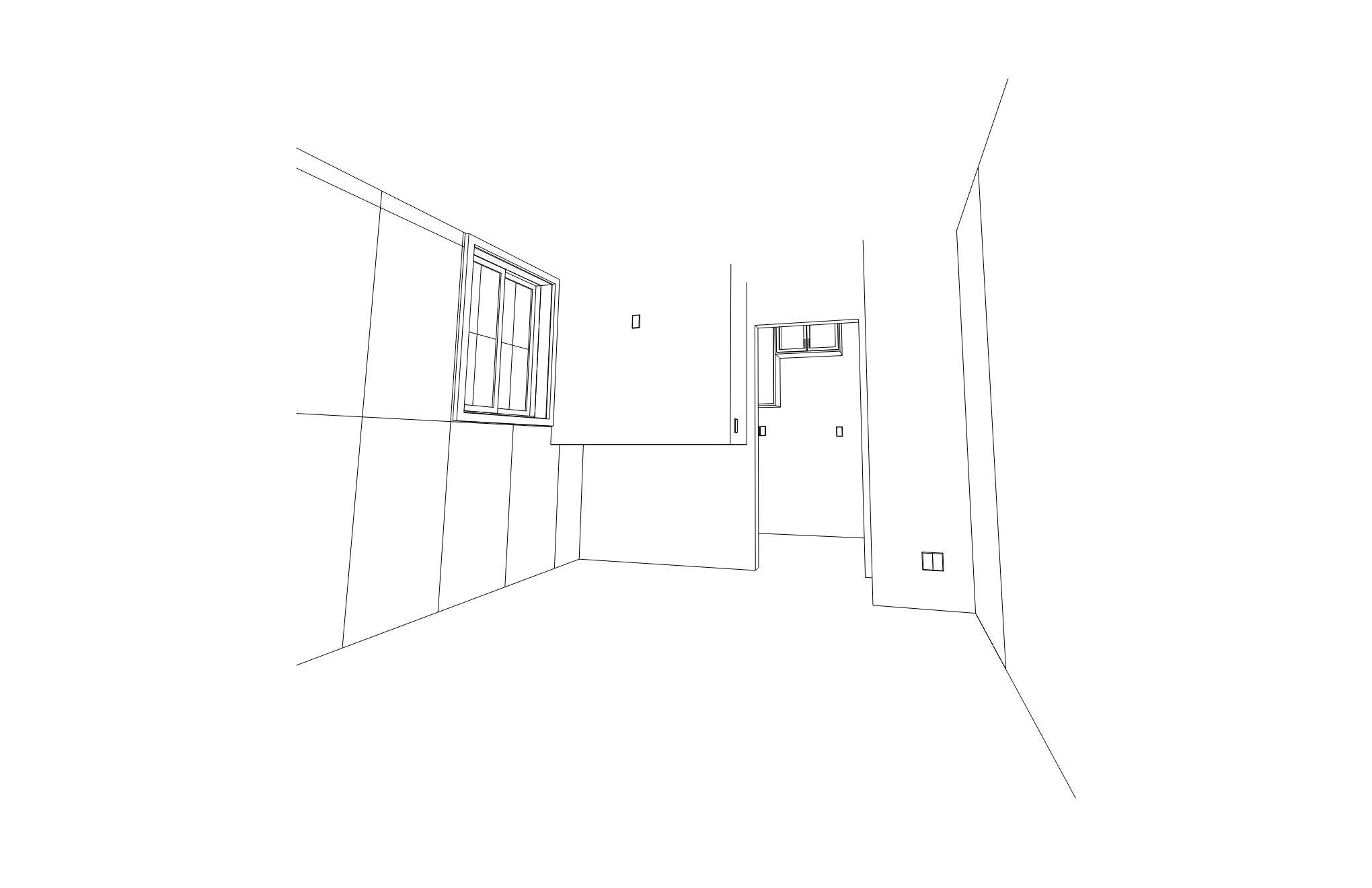 modern wood accent wall on the left white paint on the walls light blue epoxy flooring laundry room behind the wall wall mounted tv recessed ceiling lights modern computer desk and computer on the right