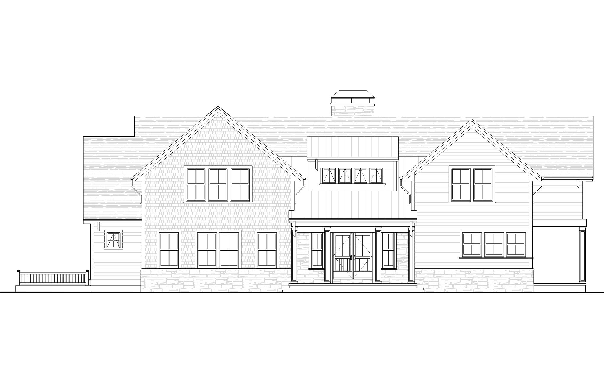 a charming two story farm house with a classic design featuring a gable roof and a welcoming porch the exterior is painted in a soft calming sage green with white trim around the windows and doors highlighting its classic architecture the cedar shake siding is a natural wood color adding depth to the exterior the roof is a dark slate gray adding a touch of elegance the porch columns are a warm natural wood surrounding the house are lush green lawns and vibrant flower beds with a mix of colorful blooms including bright pink yellow and orange flowers the sky is a clear crisp blue with a few fluffy white clouds creating a serene and pleasant atmosphere