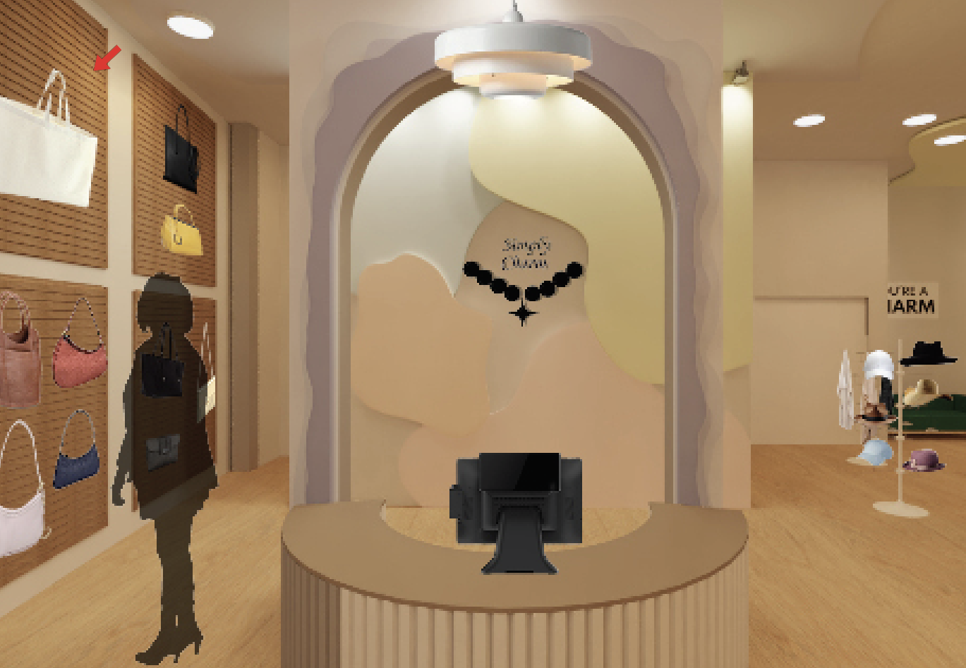 add eyewear to slat wall displays on the wall on mannequins add scarves hats purses and lighting on ceiling