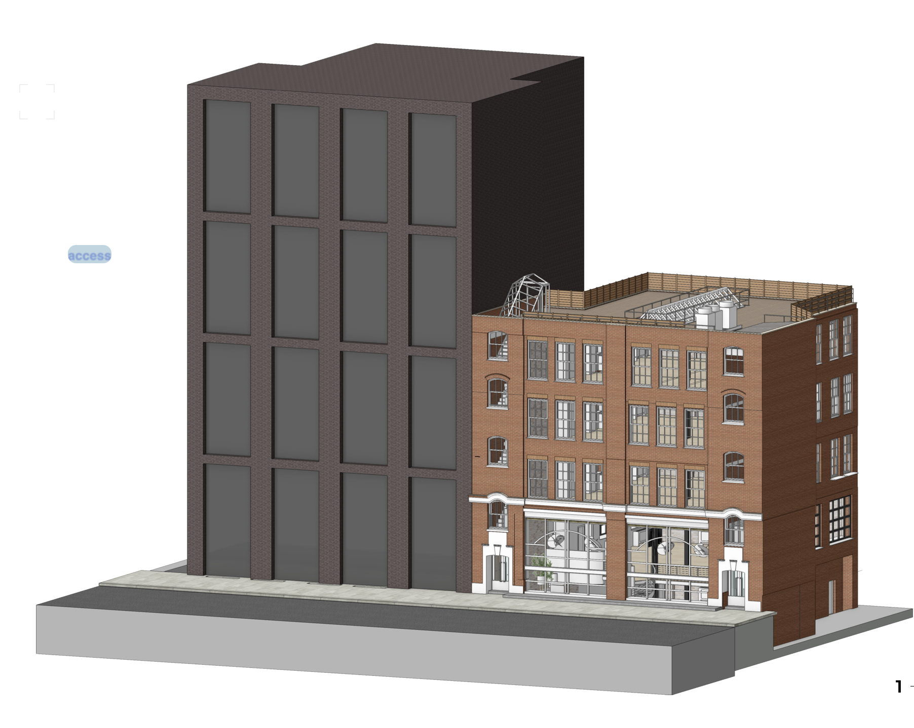 help me make an architectural sketch out of this 3d model for the front cover of the design and access statement keep geometry unchanged and white background add a soft human sketch as if in morpholio or similar