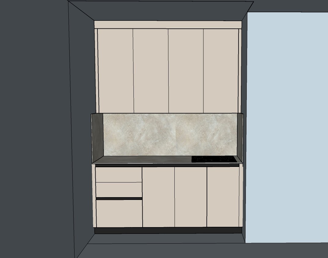 1 render this kitchen very well add a led under the upper cabinets at the right there is a w