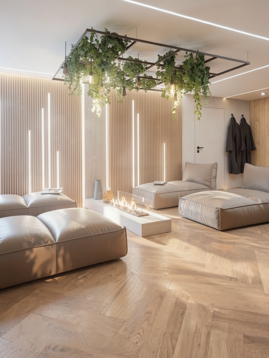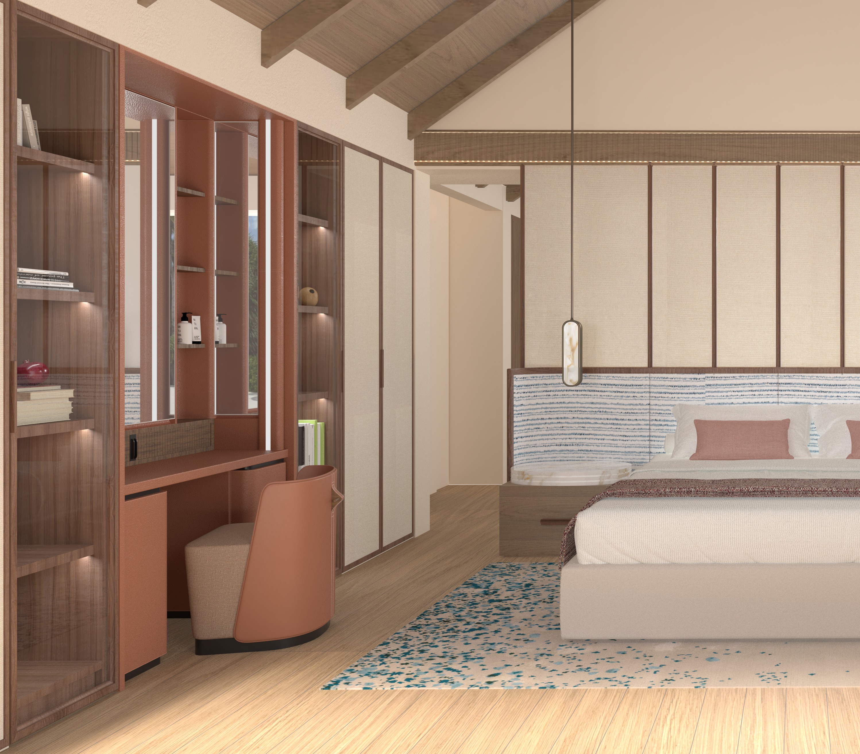 enhance this render into a soft photorealistic coastal scene while preserving all architectural details materials furniture placement camera angle and composition exactly as shown do not change the design layout landscaping or colors