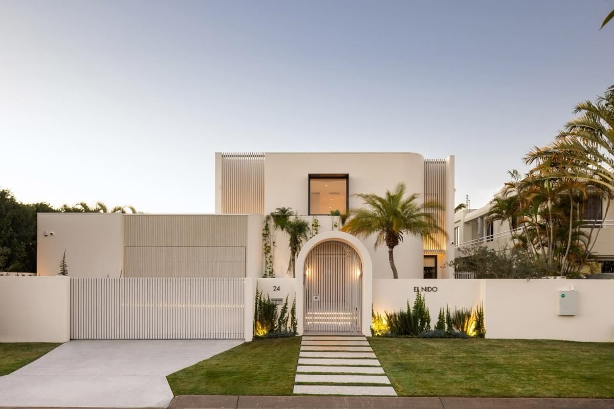 aerial shot keeping the exact design and proportions from the original render the building in a modern mediterranean style with white plaster walls black joinery glass balustrades with a simple single steel handrail and balusters include a country road landscape in the foreground hills in background