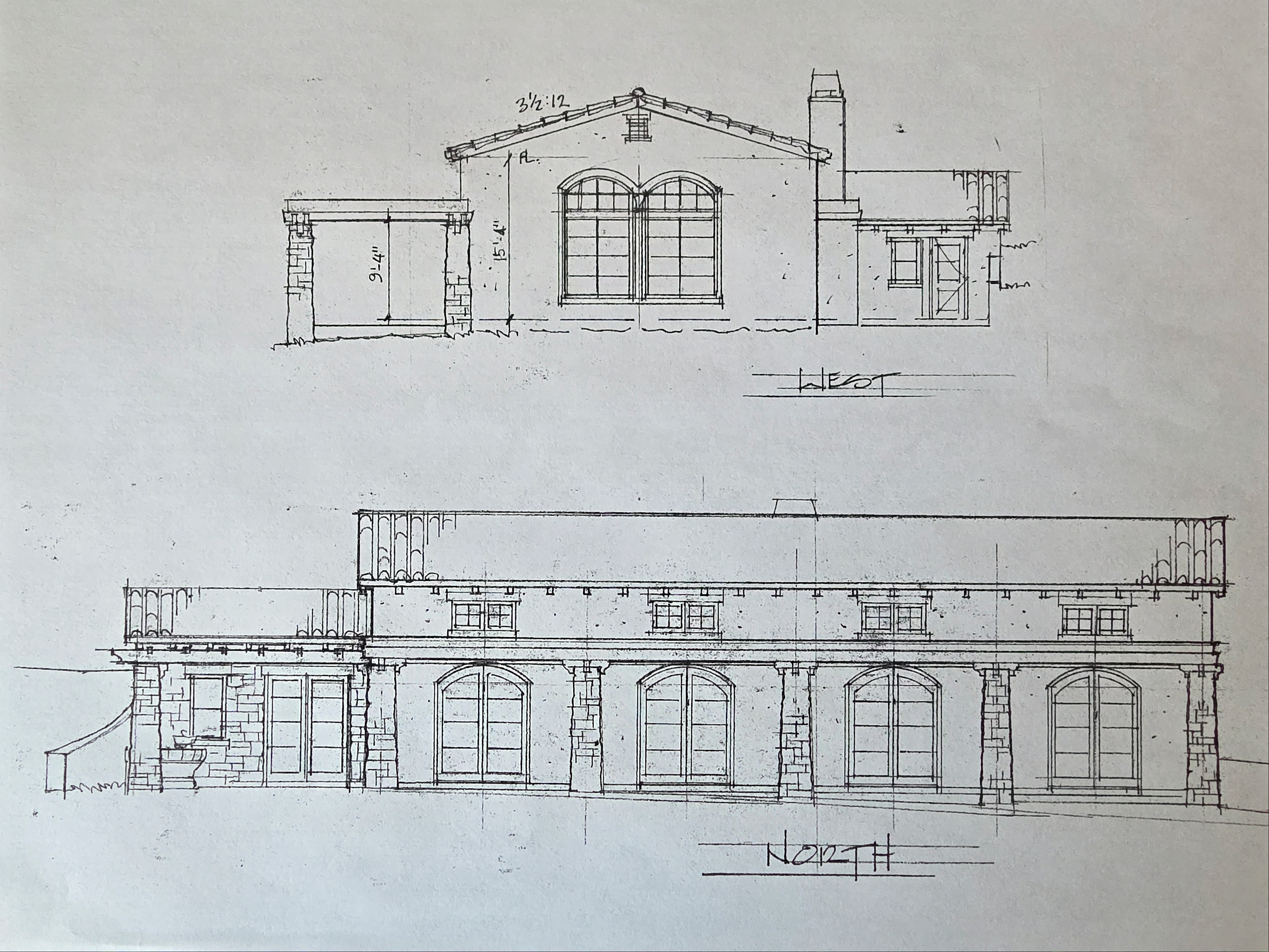create a california spanish revival building with white stucco walls and clay tile roof the building should be situated in a field with oak trees behind it and be old world in style the building should only be one story and have a 12 ft covered patio the length of the building each column should be made of stone the building should be on a pad cut into a sloping hill there should be no stairs and no balcony or railing the right side of the building should have two large windows that match the doors to the patio
