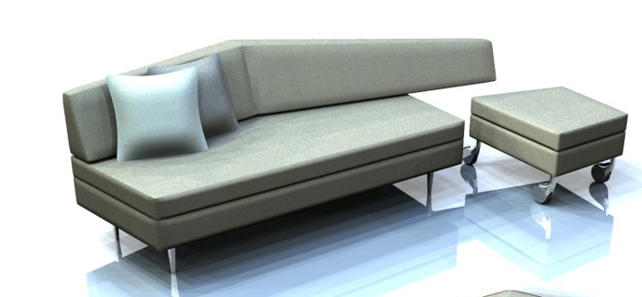 a beautifully designed elegant chair with a modern aesthetic featuring smooth flowing lines and gentle curves upholstered in a soft light gray fabric with delicate textures the legs and backrest are crafted from polished silver metal the backrest artfully features a subtle abstract pattern set against a minimalist light blue background the atmosphere exudes a serene contemporary vibe combining simplicity with sophistication the scene is illuminated with soft natural lighting to enhance the chair s elegant contours and textures