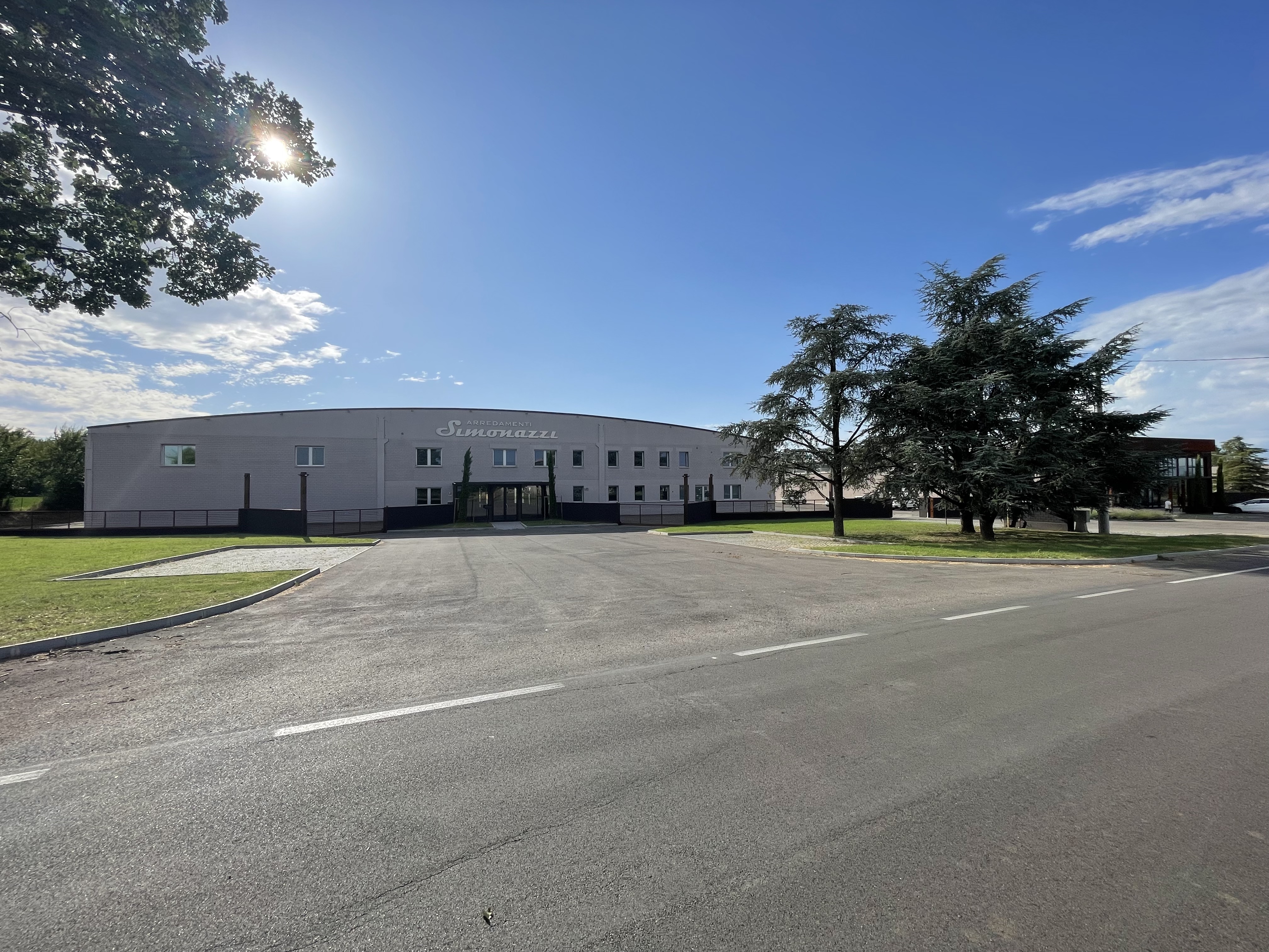 crea immagine dove l immobile rimane identico alla foto originale ma invece dell asfaltao c una spiaggia con gli ombrelloni come da reference image