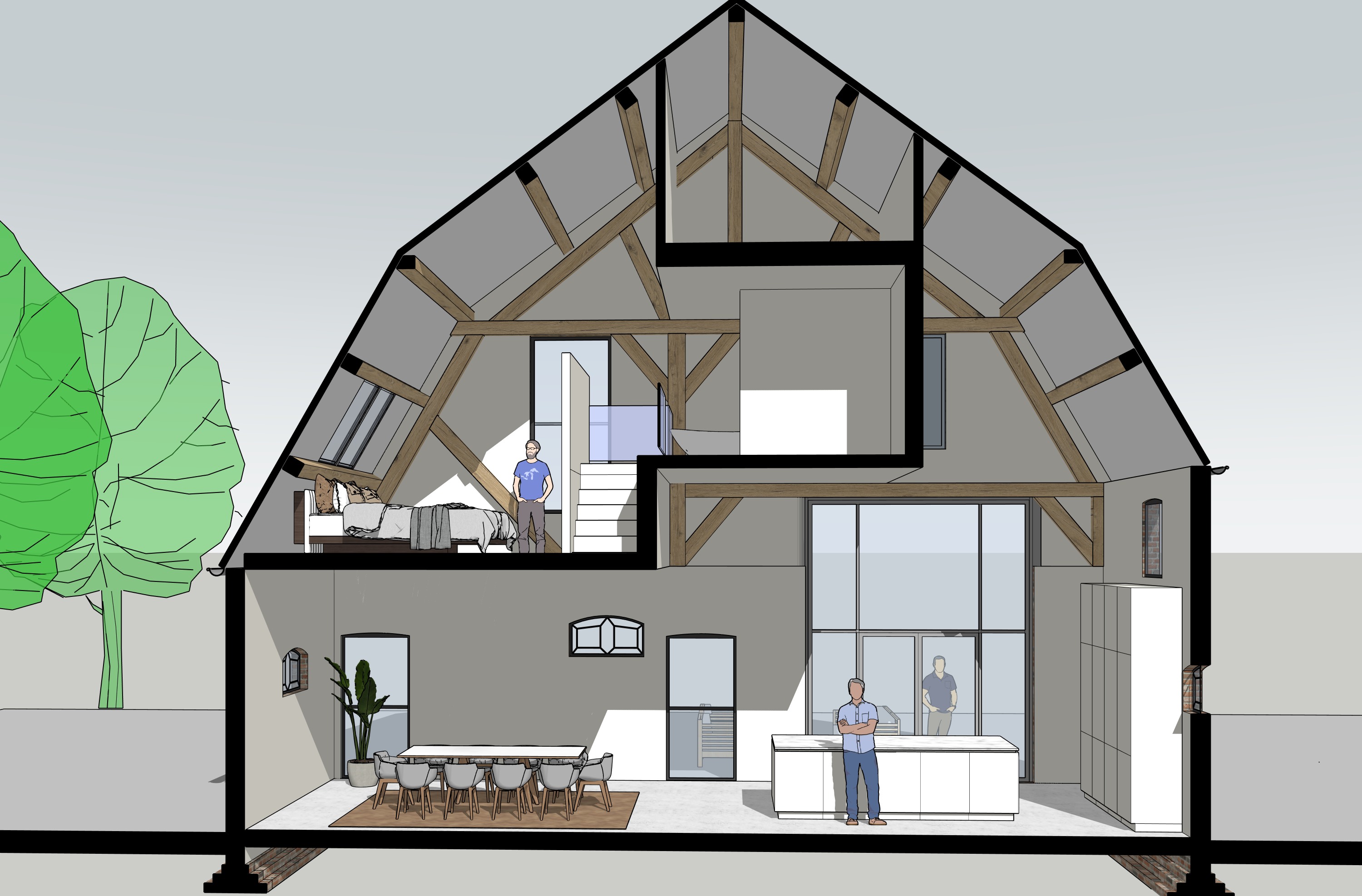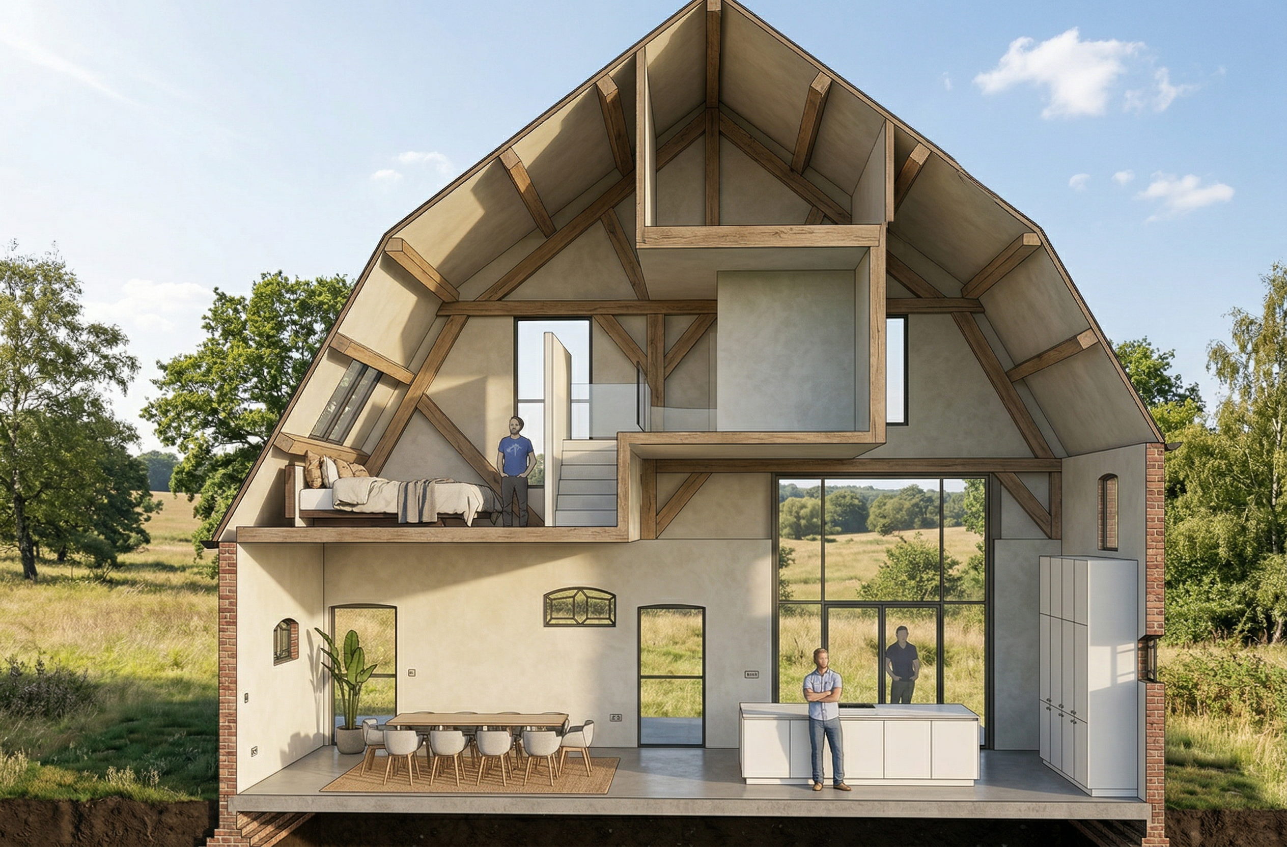the surroundings on the outside are grassland with some trees and bushes the weather outside is sunny with a few clouds keep the materials ands colours the same as in the original