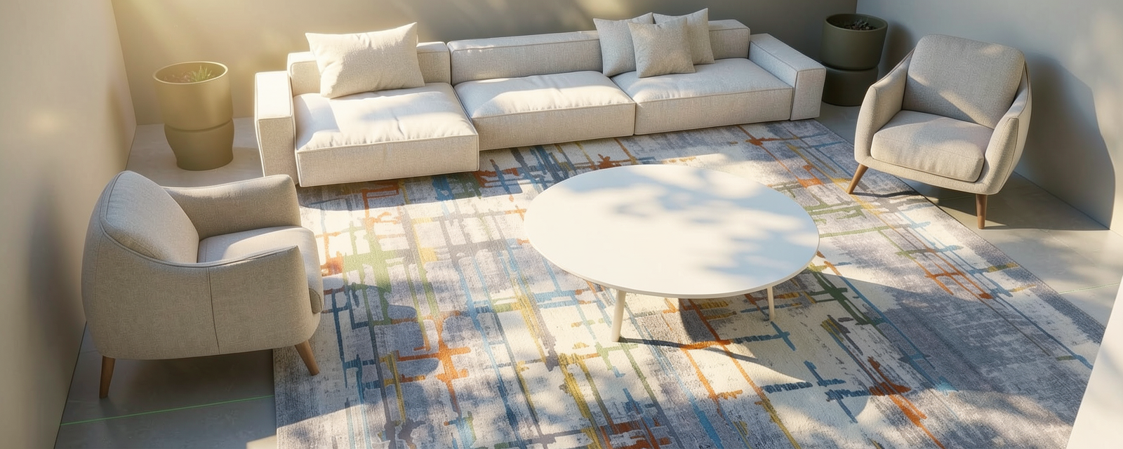 a modern kitchen rendered in a cozy and inviting atmosphere the cabinets are a sleek charcoal gray complemented by elegant silver handles the countertops are smooth and light beige providing a warm contrast overhead cabinets are a rich wooden brown adding depth and a natural element wooden stools have a light oak finish the floor is a soft weathered wood texture in light grayish brown tones giving a rustic touch the walls are a clean and bright white enhancing the room s natural light a window with dark grained wooden blinds filters gentle sunlight casting soft shadows a white door opens to a lush green garden visible just outside on the shelves vibrant books and colorful jars add pops of color creating a harmonious balance