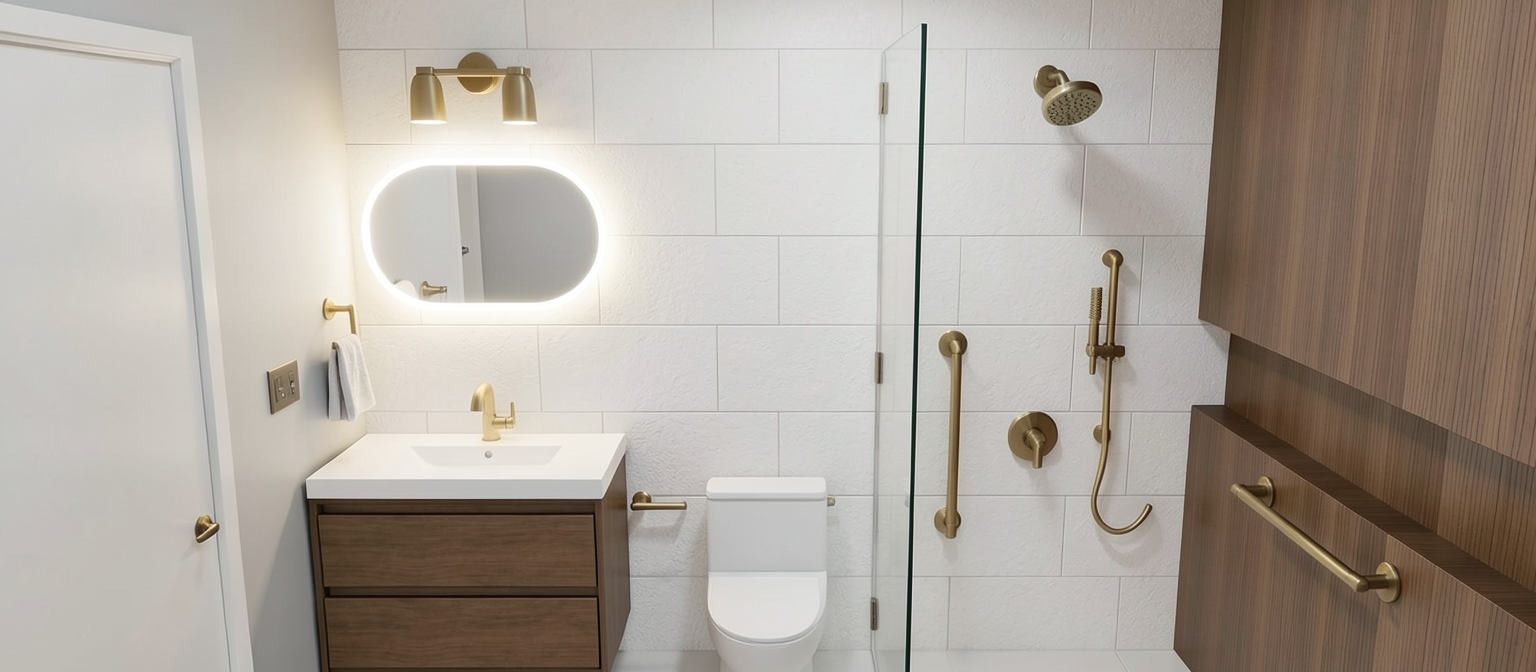 edit the existing kitchen render while preserving all original proportions lighting materials colors furniture and camera angle changes only do not add new elements replace dark grey veneer laminate on the bottom of the island and the millwork on the right for the same color finish as the walls