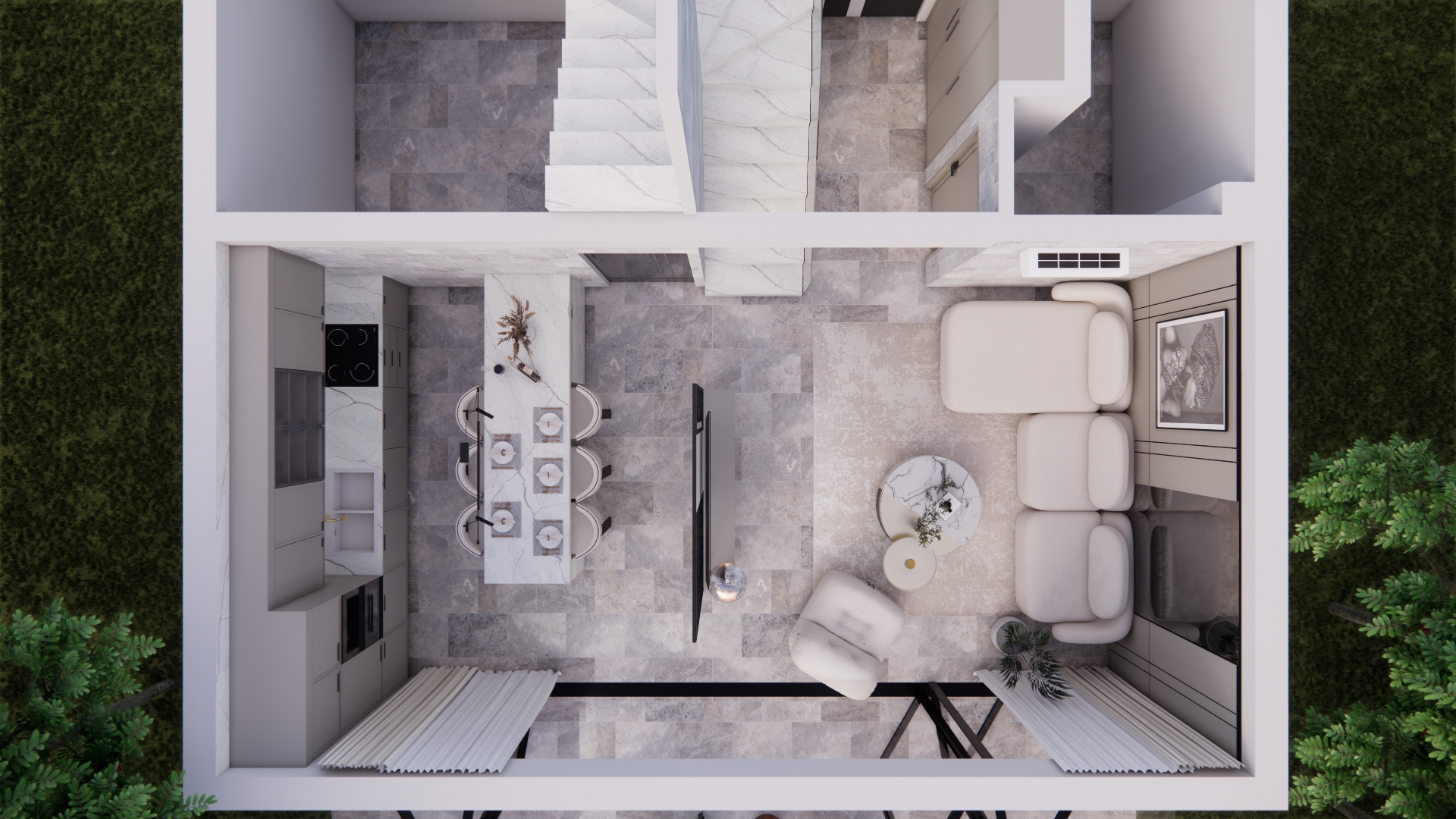 create a highly realistic interior design for a beach house the design must strictly follow the provided room layout and spatial arrangement use natural coastal materials such as light wood linen stone and rattan the interior should feel bright airy and luxurious with large windows allowing plenty of natural sunlight and ocean views include neutral beach inspired colors like white sand beige soft blue and light gray add tasteful coastal decor minimalistic furniture and soft textures that enhance the relaxed seaside atmosphere ensure the proportions furniture placement and circulation respect the exact layout plan render the scene in ultra realistic style high detail natural lighting architectural visualization quality 4k
