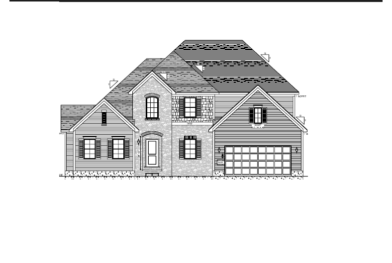 make as photorealistic as possible while keeping textures the same as selection professional landscaping in a lightly wooded scene with good lighting white siding per plan light grey old world color stone as shown on the plan dark roof black white windows solid black front