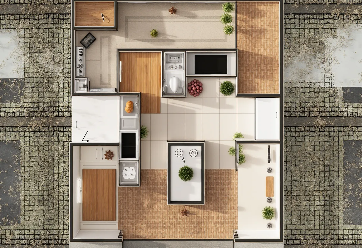 create render from this floor plan add luxury elements and luxury finishes on the materials and elements add wooden elements in combination with beige cream elements make a eye level render
