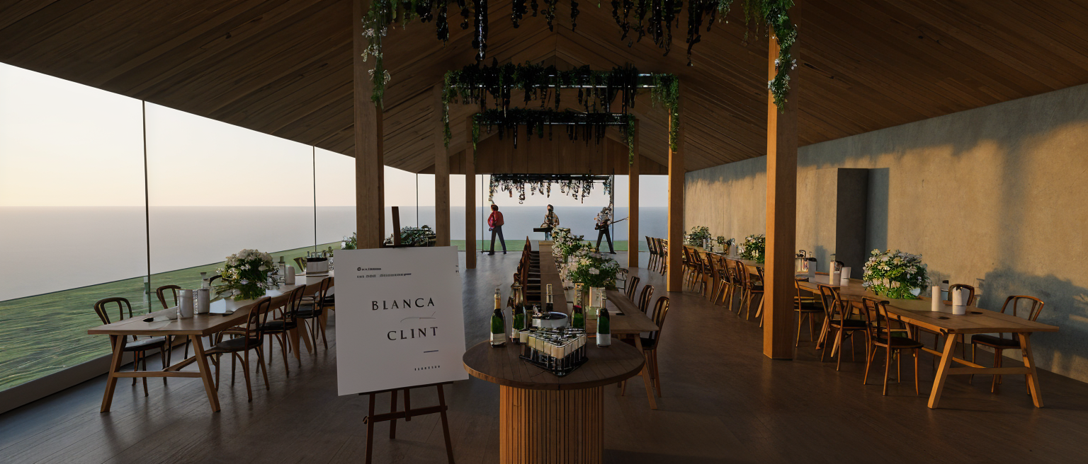 interior scene maintain original colours and material textures aim for realistic lighting and depth add sunlight from the camera s position warm golden hour tone realistic vineyard winery landscape visible only through the existing windows