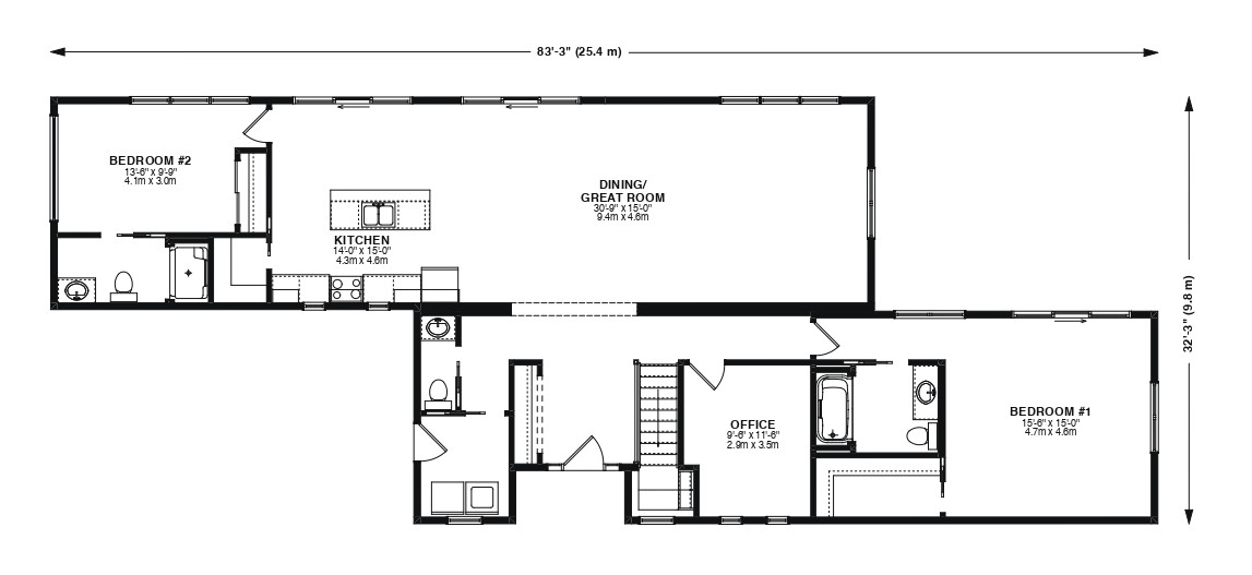 convert this floor plan into a realistic isometric 3d view of a full house show the space from an elevated angle with furniture walls and details visible black white and brown finishes modern furniture that is cool wood tones use the same furniture as shows on the plan do not change the orientation of the floorplan