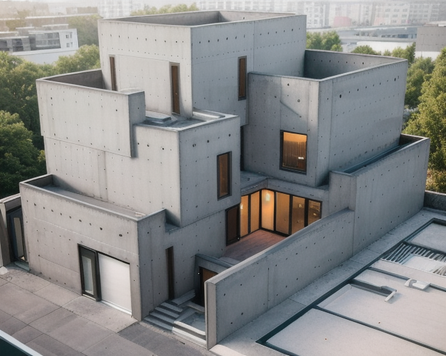 modern two story house with white walls and wooden accents featuring large glass windows surrounding the house is a lush garden with vibrant green grass and realistic textured landscaping a sleek driveway leads to a black car parked under a carport with a matching white roof the atmosphere is serene and contemporary with soft natural lighting casting gentle shadows for a peaceful ambiance the color palette includes crisp white for the house warm light brown for the wooden panels deep black for windows and the car and various shades of green for the garden architecture