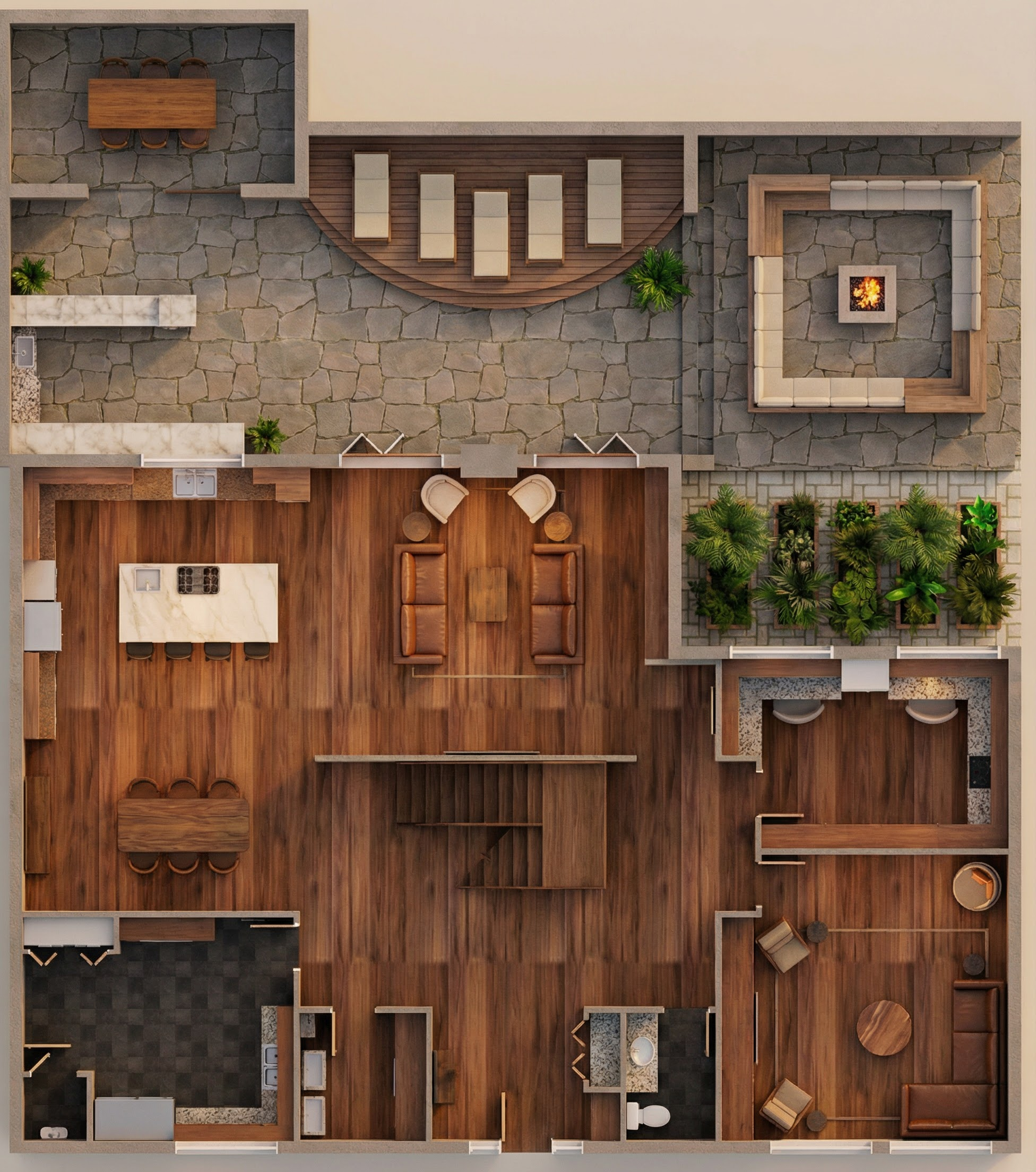 render this elevation using the reference images as inspiration stay true to the outline and do not change anything but the materials and colors