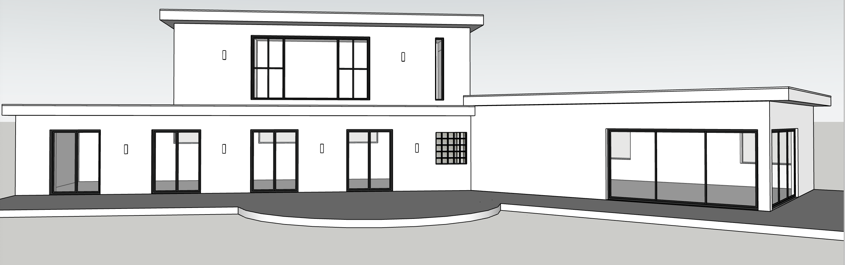 facade blanche type californienne une foret de ch ne de hetre et de sapin derri re la maison