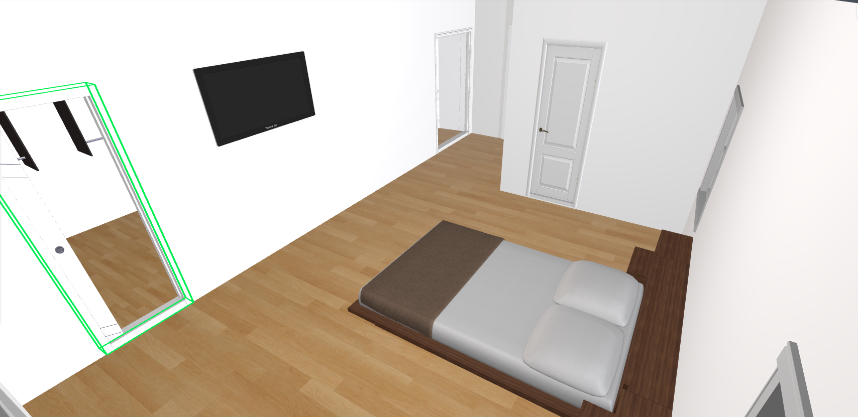 left door is a walk in closet doors are white floors a white oak large plank white trim add bench in front of bed