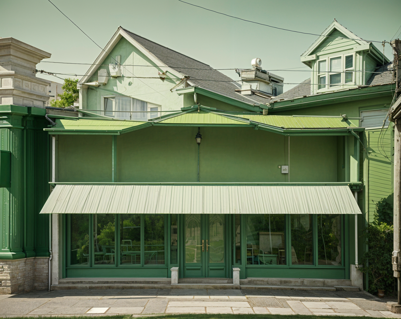 can we make the house on the left bigger and a different modern style while being further set back from the street