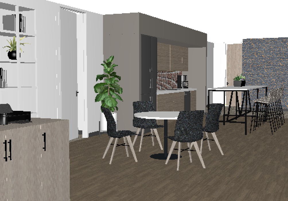 render photorealistic keeping finishes the same ceiling is standard office grid with 2x2 direct indirect led lights