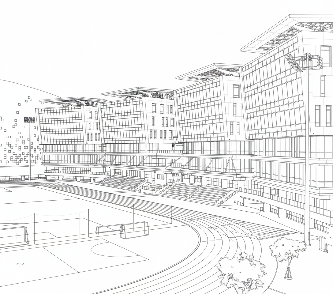 contemporary exterior shot render the uploaded image but play with the elements provided making changes to explore what different potentials for the facade architecture
