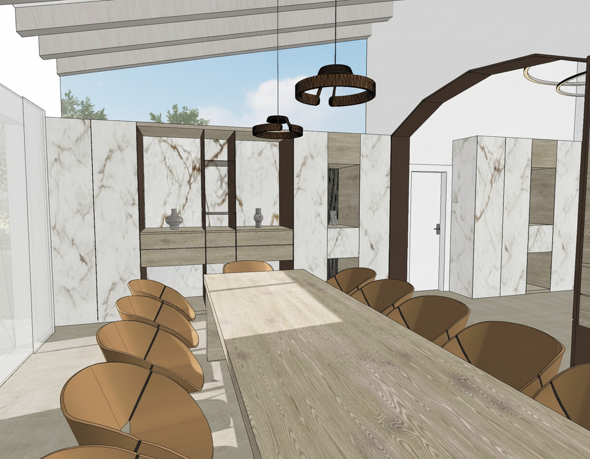 architectural hand painted rendering of a new england style executive ranch roofs as drawn add the same grey stained shake as shown above the garage gable as well same height as the right most gable please note the garage portion of the home is a 45 degree angle forward of the main house use the same color tones of light grey medium grey and greige taupe accents please add a siding pattern of 8 3 3 where there are no shakes shown create the rendering in the style of an architect s copic marker concept sketch use strong contrast and bold color blocking with a light grey main siding and warm natural stone accent as shown windows should have black frames and cool blue reflections render expressive freehand linework with visible marker streaks and layering emphasizing depth and tone include foreground trees with dark trunks and soft green foliage loose shadows on the driveway and a soft blue sky wash behind the overall composition should feel energetic balanced and artistic like a presentation board sketch style tags architectural marker sketch hand drawn rendering copic style modern farmhouse charcoal contrast presentation board illustration architecture