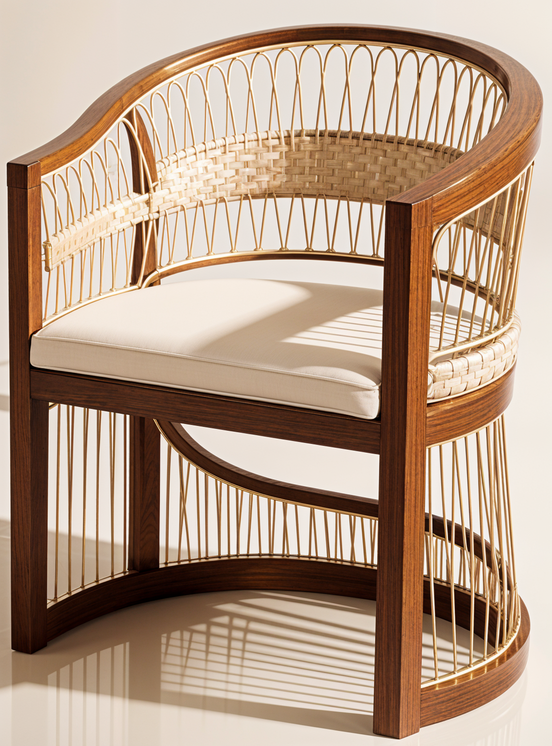 accent strings weaving back upholstered white seat and back wood finish