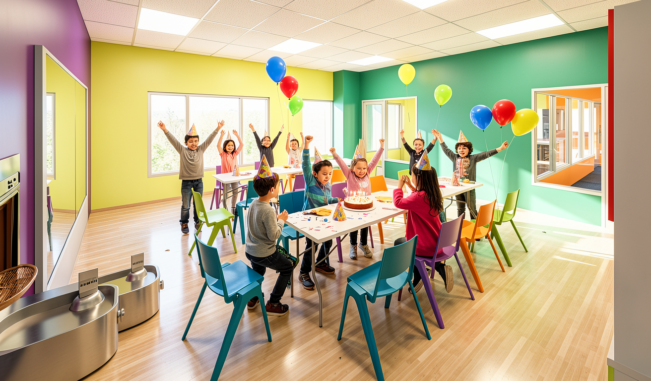 a new build clubhouse for a local marina the siding is a vertical white clapboard the roof is a dark standing seam metal on the left of the photo boats can be seen docked beyond the building to the right cars are parked off of the main road it is a sunny day with puffy clouds in the sky