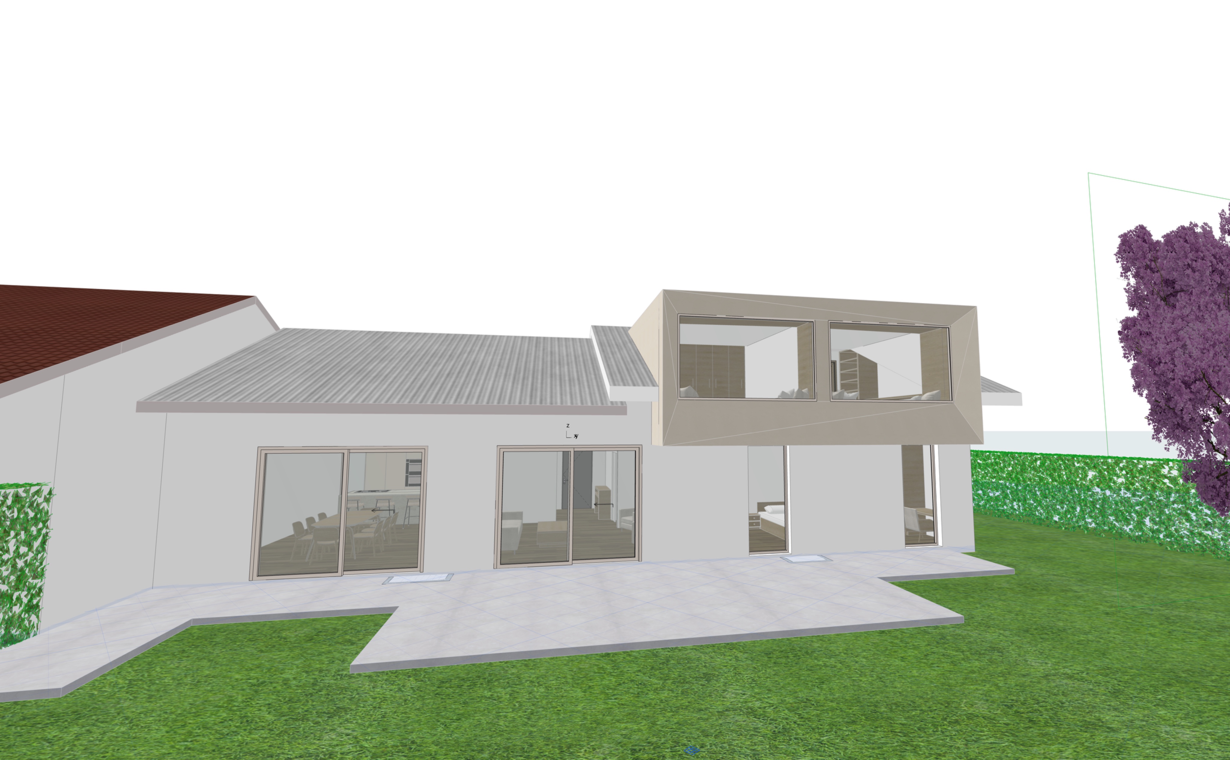 rend cette image photor aliste fa ades en cr pis fin beige toiture en bac acier moka l ment en sailli au 1er tage en m tal moka rend cette image s duite et vivante
