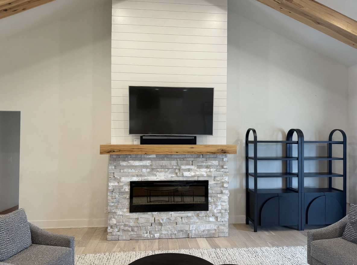 remove the black bookshelves on the side of the fireplace